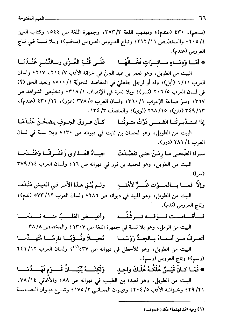 (سخم)، 430 (عندم)؛ وتهذيب اللغة 3/ 353؛ وحمهرة اللغة ص544؛ وكتاب العين 4/ 205؛ والمخصص 11/ 212؛ وتاج العروس (سخم)؛ وبلا نسبة في تاج العروس (عندم).