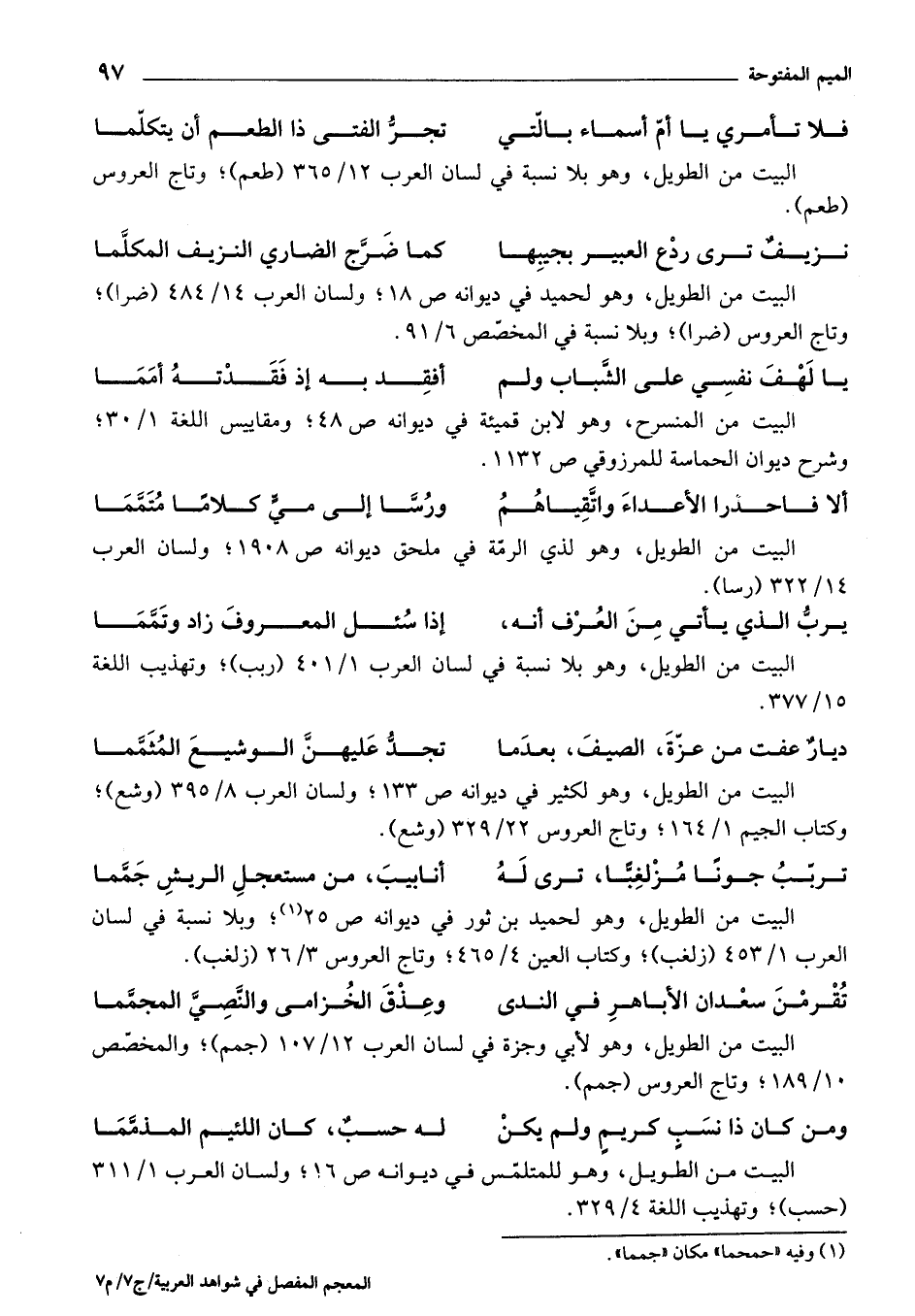 كتاب المعجم المفصل في شواهد العربية (اسم الجزء: 7)