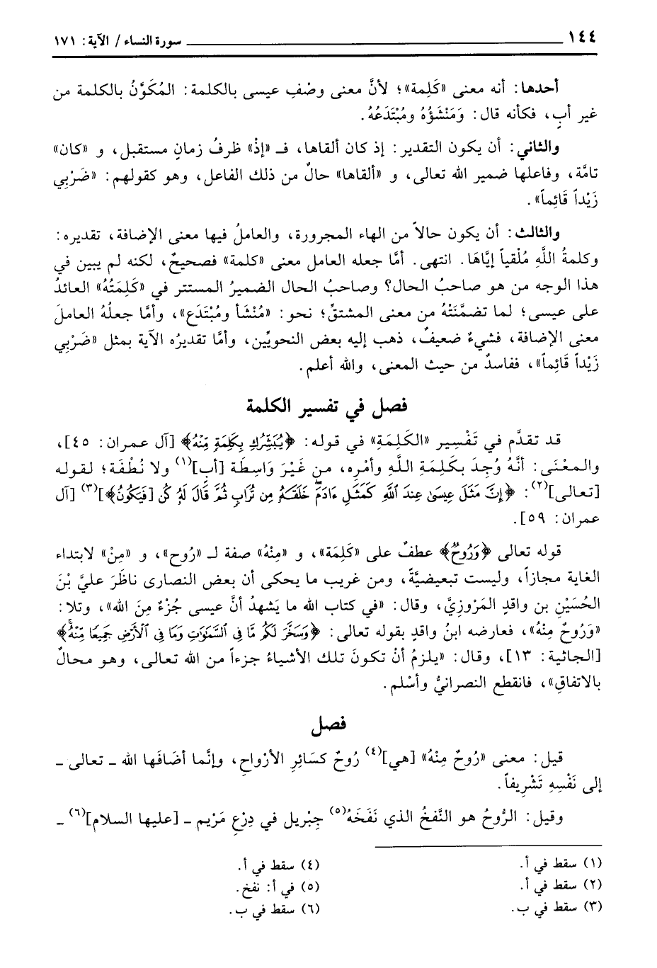 فصل في تفسير الكلمة