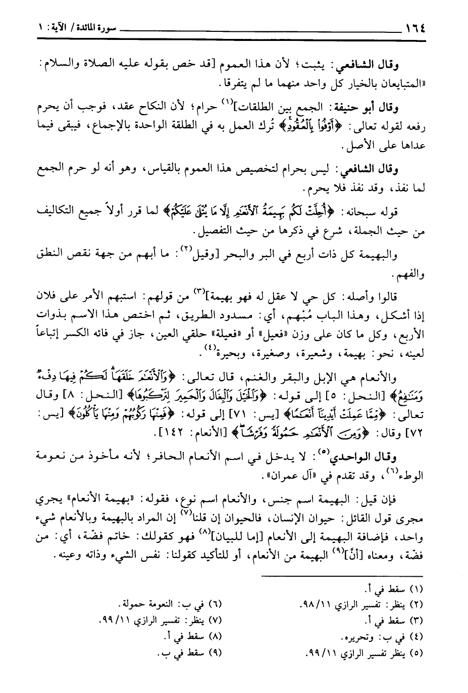 وقال الواحدي: لا يدخل في اسم الأنعام الحافر؛ لأنه مأخوذ من نعومة الوطء، وقد تقدم في «آل عمران» .