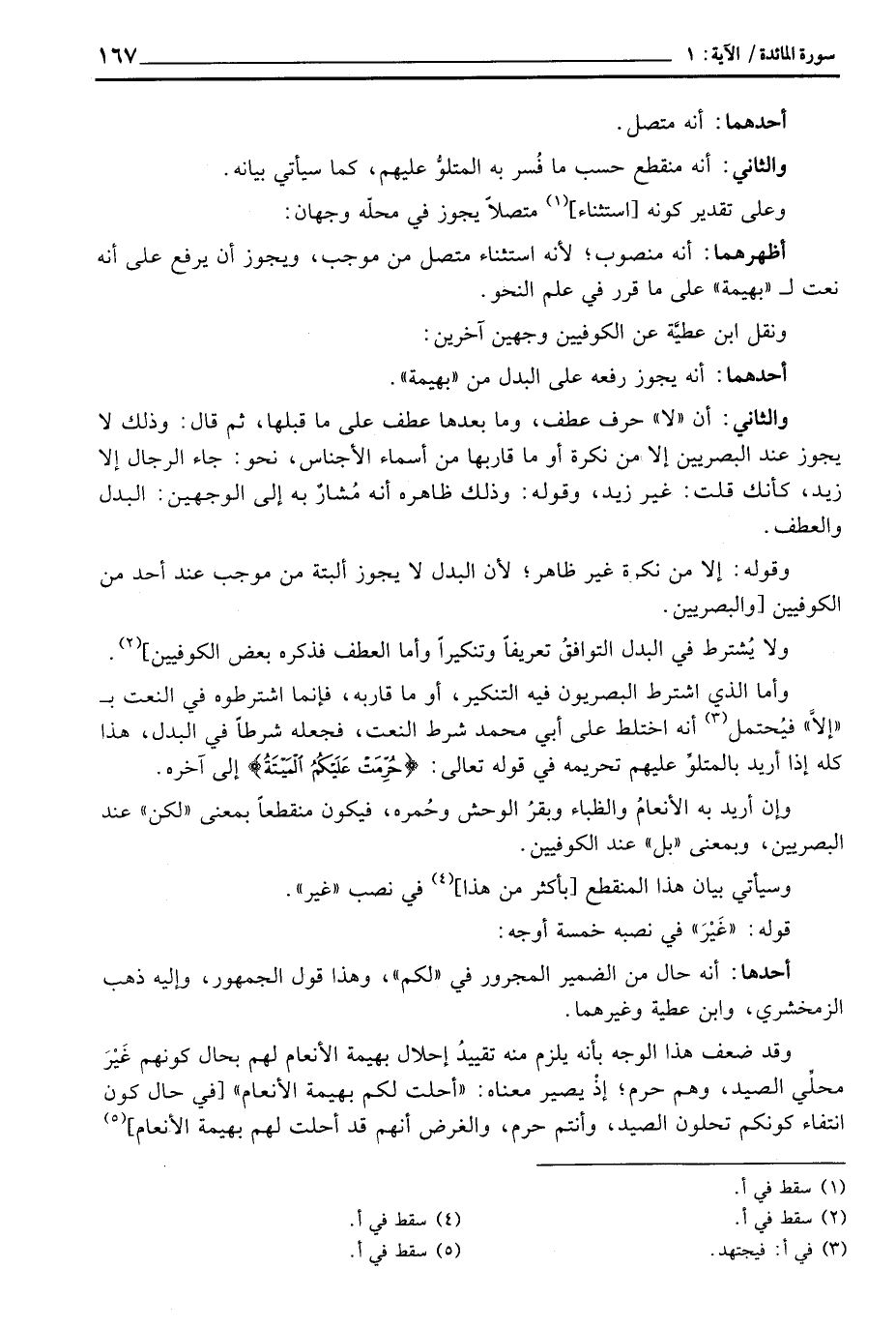وإن أريد به الأنعامُ والظباء وبقرُ الوحش وحُمره، فيكون منقطعاً بمعنى «لكن» عند البصريين، وبمعنى «بل» عند الكوفيين.