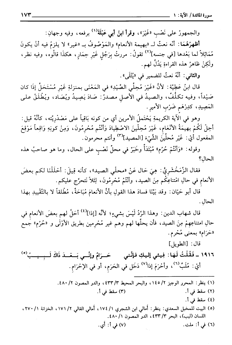 قال أبو حَيّان: وقد بَيَّنَا فسادَ هذا القولِ بأنَّ الأنعامَ مُبَاحَةٌ، مُطْلقاً لا بالتَّقْييدِ بهذا الحالِ.