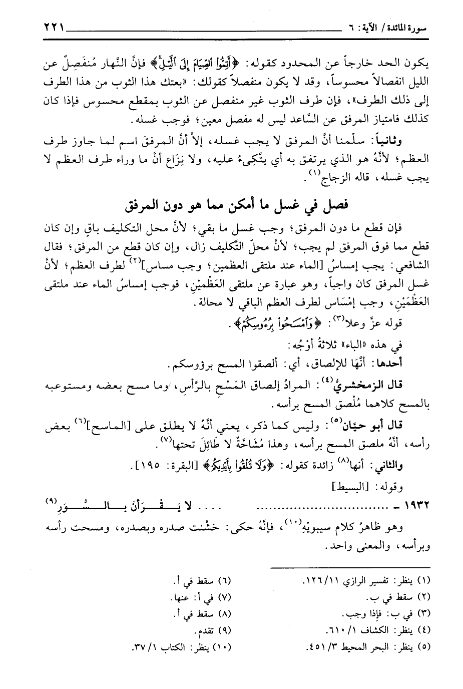 وثانياً: سلّمنا أنّ المرفق لا يجب غسله، إلاَّ أنَّ المرفقَ اسم لما جاوز طرف العظم؛ لأنَّهُ هو الذي يرتفق به أي يتَّكِئ عليه، ولا نِزَاع أنَّ ما وراء طرف العظم لا يجب غسله، قاله الزجاج.