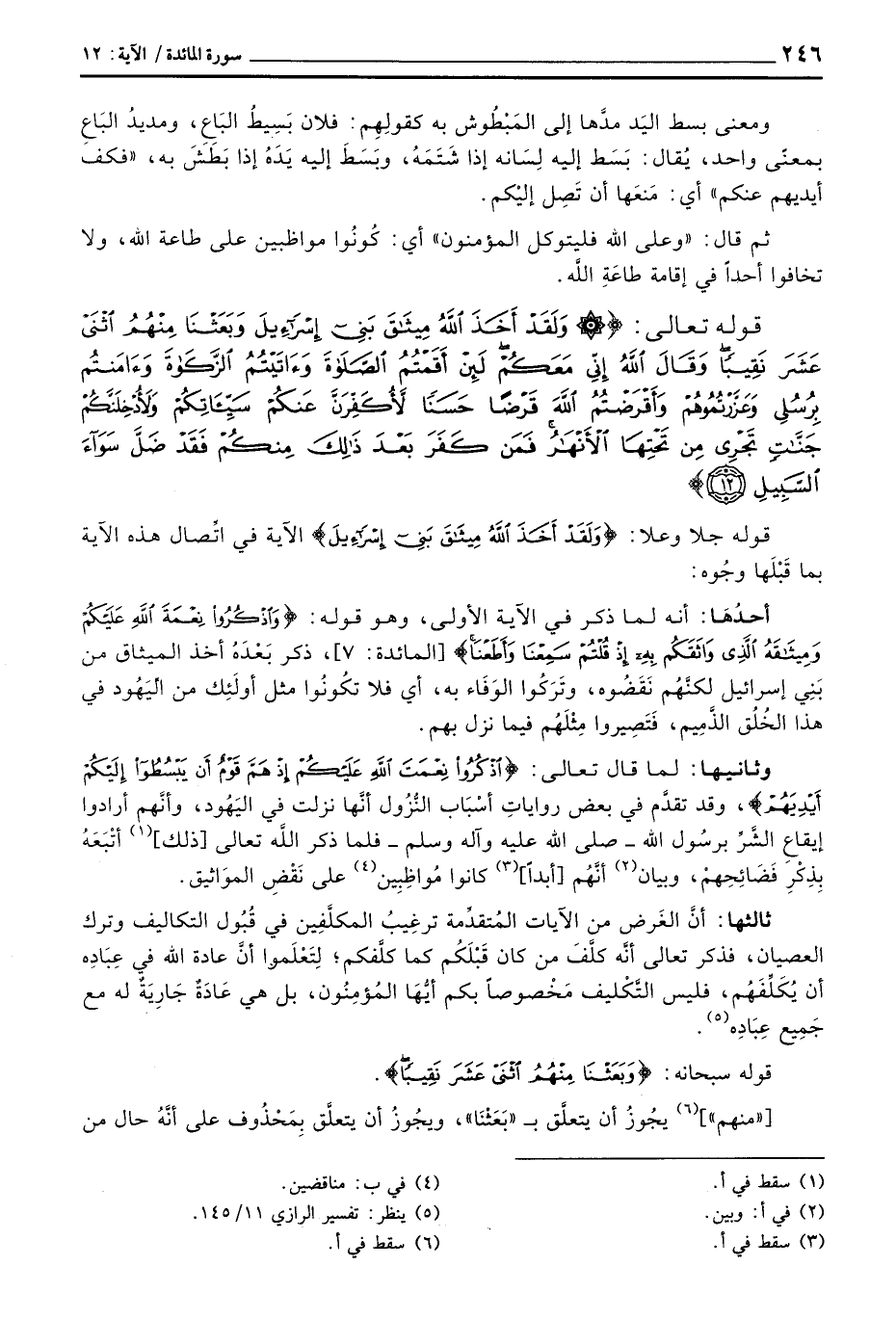 قوله سبحانه: {وَبَعَثْنَا مِنهُمُ اثني عَشَرَ نَقِيباً} .