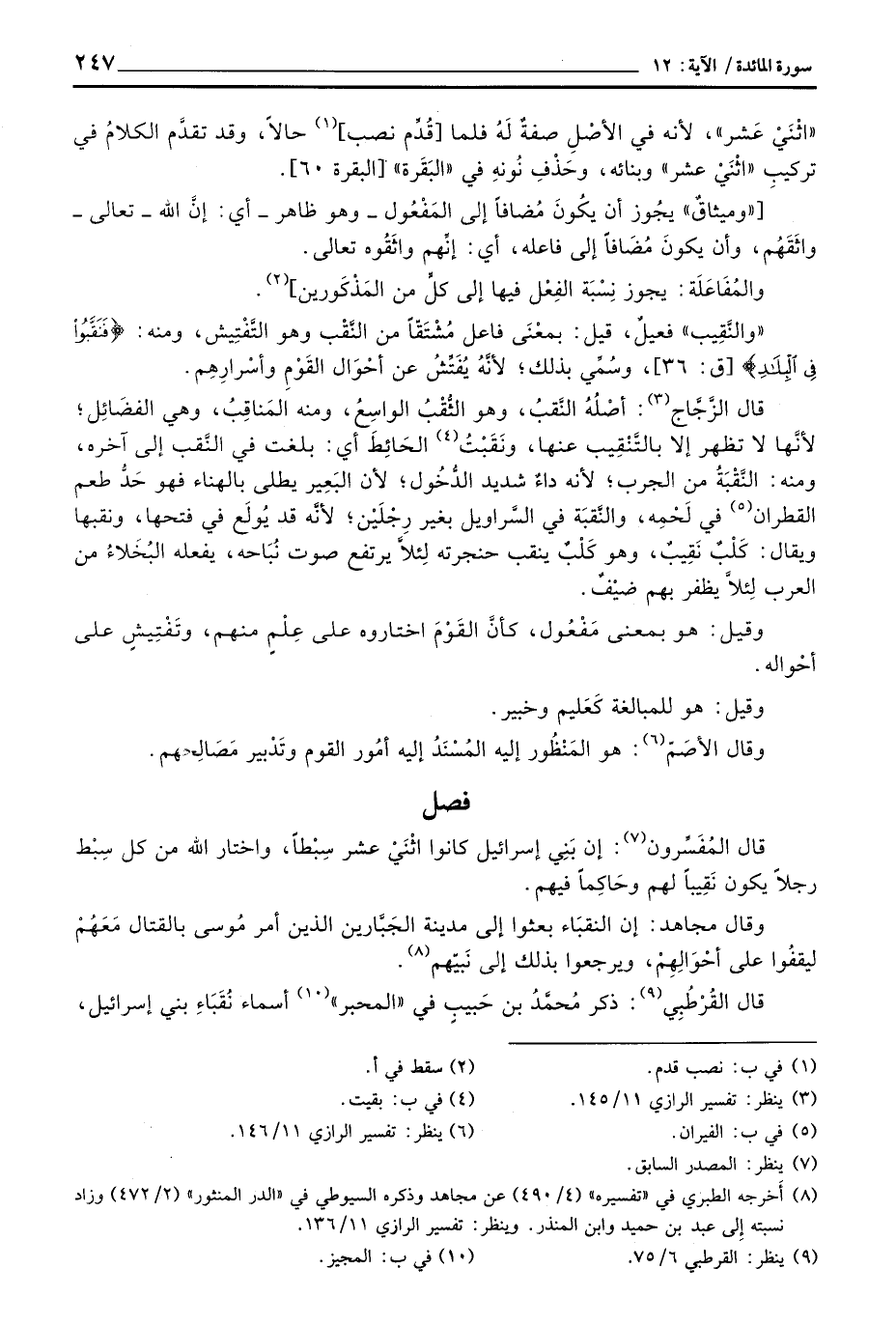 قال المُفَسِّرون: إن بَنِي إسرائيل كانوا اثْنَيْ عشر سِبْطاً، واختار الله من كل سِبْط رجلاً يكون نَقِيباً لهم وحَاكِماً فيهم.