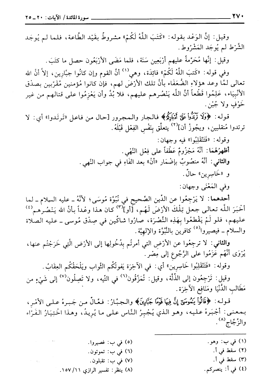 والثاني: لا ترجِعُوا عن الأرْضِ التي أمرتُم بِدُخُولِها إلى الأرْض الَّتِي خَرَجْتُم عنها، يُرْوَى أنَّهُم عَزَمُوا على الرُّجُوعِ إلى مِصْر.