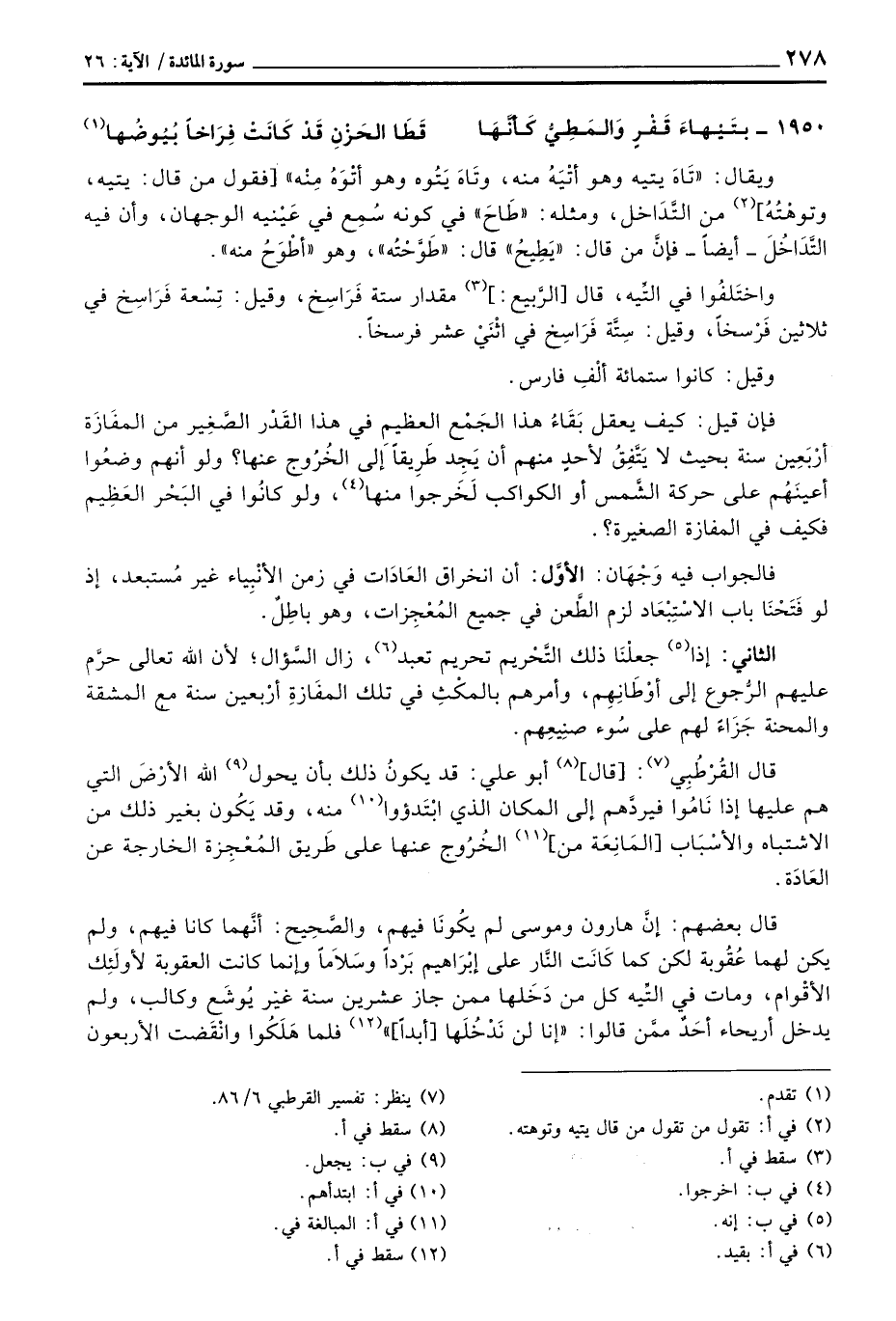 فإن قيل: كيف يعقل بَقَاءُ هذا الجَمْع العظيمِ في هذا القَدْر الصَّغِير من المفَازَة أرْبَعِين سنة بحيث لا يَتَّفِقُ لأحدٍ منهم أن يَجِد طَرِيقاً إلى الخُرُوج عنها؟ ولو أنهم وضعُوا أعينَهُم على حركة الشَّمس أو الكواكب لَخَرجوا منها، ولو كانُوا في البَحْر العَظِيم فكيف في المفازة الصغيرة؟ .