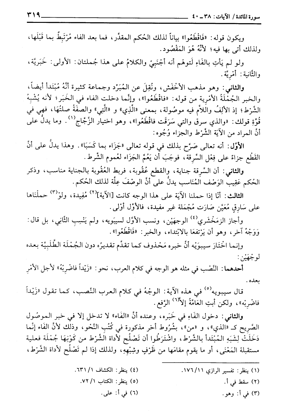 الثالث: أنّا إذا حملنا الآيَة على هذا الوجه كانت [الآية] مُفِيدة، ولوْ حملْنَاها على سَارِقٍ مُعَيَّن صَارَت مُجْمَلة غير مفيدة، فالأوَّل أوْلى.