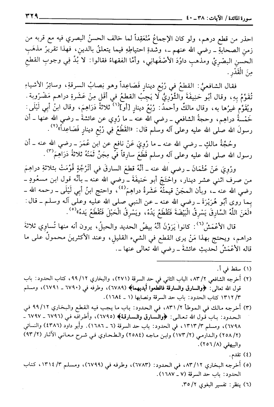 احذر من قطع درهم، ولو كان الإجماعُ مُنْعَقِداً لما خالف الحسنُ البصري فيه مع قربه من زمنِ الصحابةِ - رَضِيَ اللَّهُ عَنْهم -، وشدةِ احتياطِهِ فيما يتعلقُ بالدينِ، فهذا تقريرُ مذهَبِ الحسنِ البصْرِيِّ ومذهبِ داوُدَ الأصْفَهانِي، وأمَّا الفقهاءُ فقالوا: لا بُدَّ فِي وجوبِ القطعِ مِنَ الْقَدْرِ.