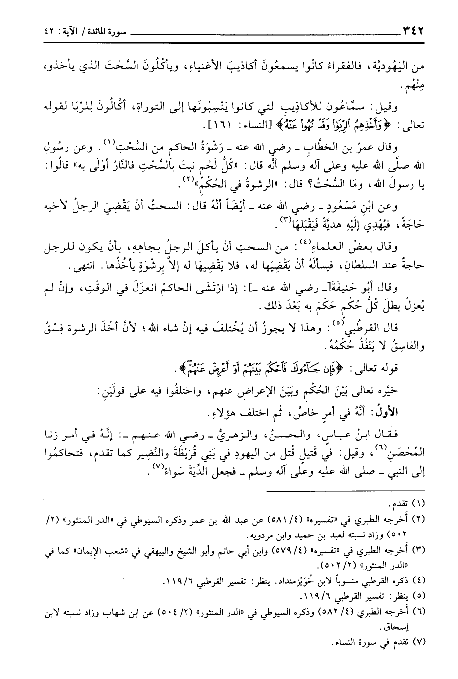 وقال عمرُ بن الخطَّابِ - رَضِيَ اللَّهُ عَنْه - رَشْوَةُ الحاكم من السُّحْتِ. وعن رسُولِ الله صلَّى الله عليه وعلى آله وسلم أنَّه قال: «كُلُّ لَحْمٍ نبتَ بالسُّحْتِ فالنَّارُ أوْلَى به» قالُوا: يا رسولَ الله، ومَا السُّحْتُ؟ قال: «الرشوةُ في الحُكْمِ» .