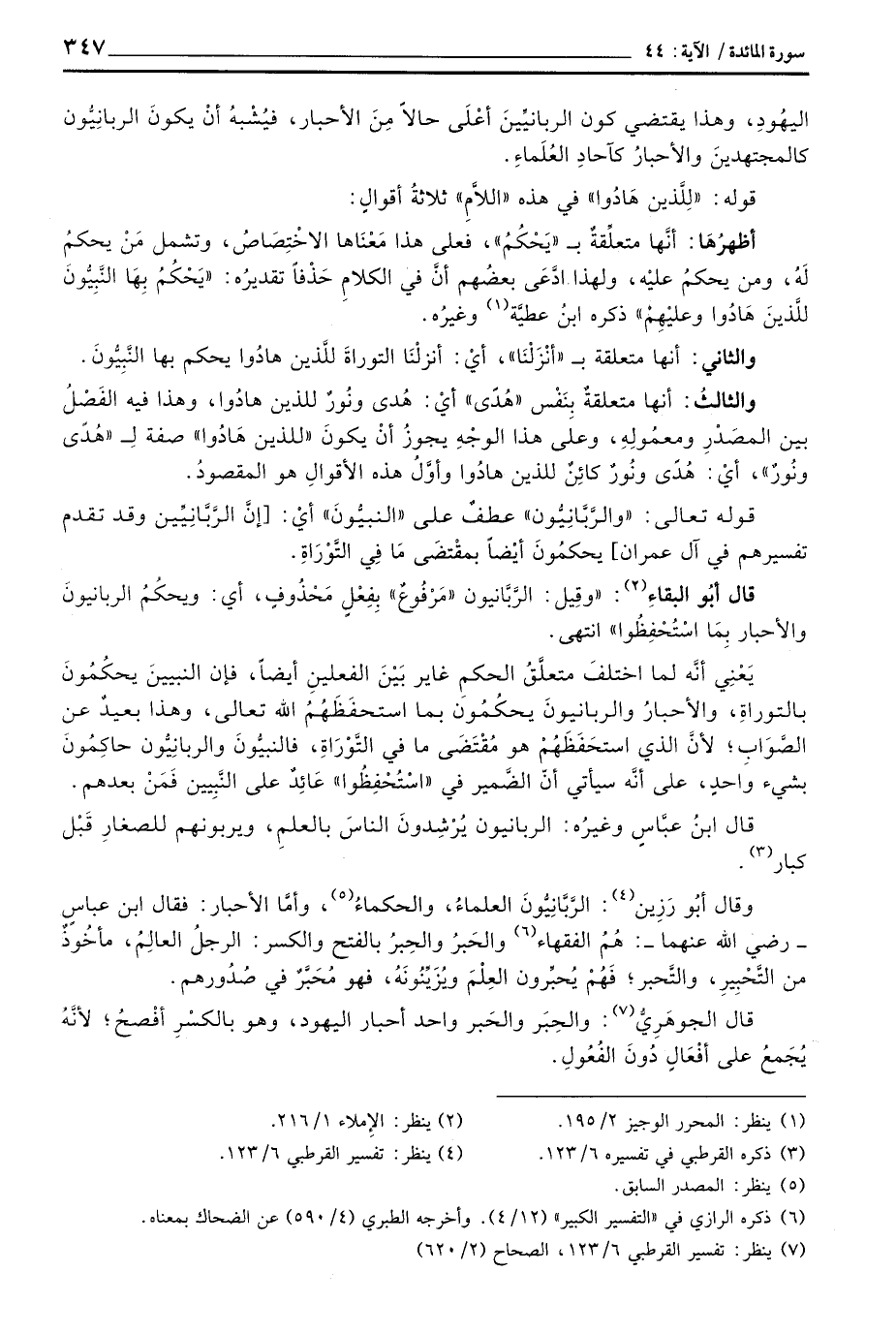 قوله تعالى: «والرَّبَّانِيُّون» عطفٌ على «النبيُّونَ» أيْ: [إنَّ الرَّبَّانِيِّين وقد تقدم تفسيرهم في آل عمران] يحكمُونَ أيْضاً بمقْتضَى مَا فِي التَّوْرَاةِ.