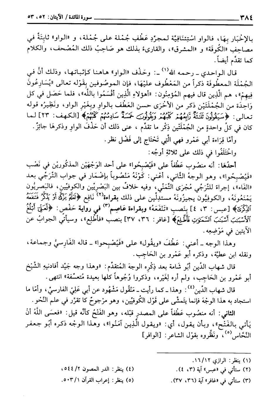 وهذا الوجه - أعني: عَطْفَ «ويقُول» على «فَيُصْبِحوا» - قاله الفَارِسيُّ وجماعة، ونقله ابن عطيَّة، وذكره أبو عَمْرو بن الحَاجِب.