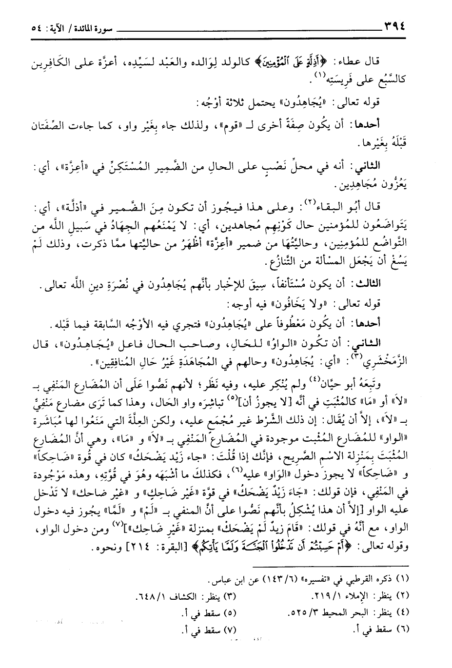 قال أبُو البقاء: وعلى هذا فيجُوز أن تكون مِنَ الضَّمير في «أذلَّة» ، أي: يَتَواضَعُون للمُؤمنين حال كَوْنِهِم مُجاهدين، أي: لا يَمْنَعُهم الجِهَادُ في سَبيلِ اللَّه من التَّواضُع للمُؤمِنِين، وحاليَّتُهَا من ضمير «أعِزَّة» أظْهَرُ من حاليَّتها ممَّا ذكرت، وذلك لَمْ يَسُغْ أن يَجْعَل المسْألة من التَّنازُع.