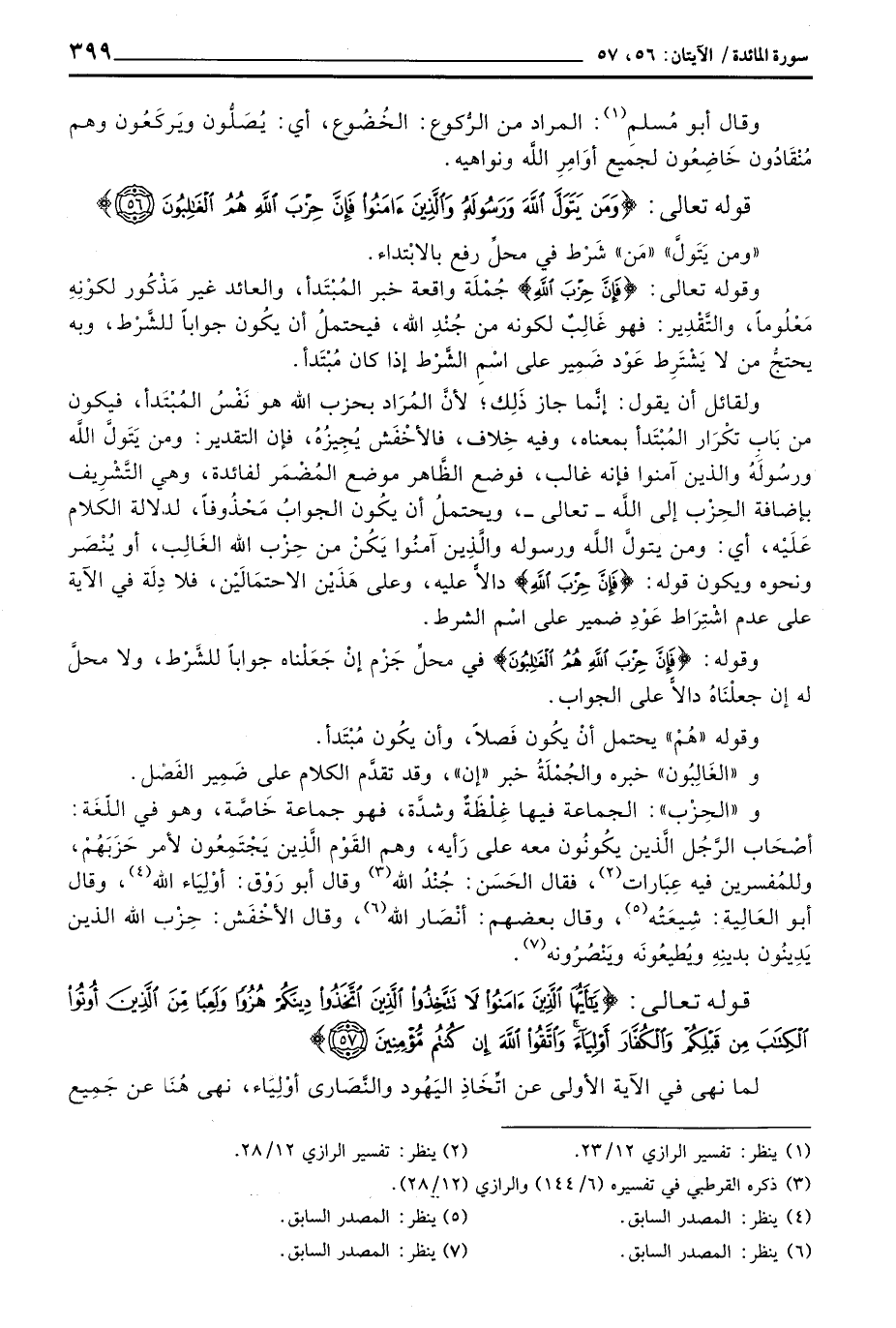 و «الحِزْب» : الجماعة فيها غِلْظَةٌ وشدَّة، فهو جماعة خَاصَّة، وهو في اللّغَة: أصْحَاب الرَّجُل الَّذين يكُونُون معه على رَأيه، وهم القَوْم الَّذِين يَجْتَمِعُون لأمر حَزَبَهُمْ، وللمُفسرين فيه عِبَارات، فقال الحَسَن: جُنْدُ الله وقال أبو رَوْق: أوْلِيَاء الله، وقال أبو العَالِية: شِيعَتُه، وقال بعضهم: أنْصَار الله، وقال الأخْفَش: حِزْب الله الذين يَدِينُون بدينِهِ ويُطيعُونَه ويَنْصُرُونه.