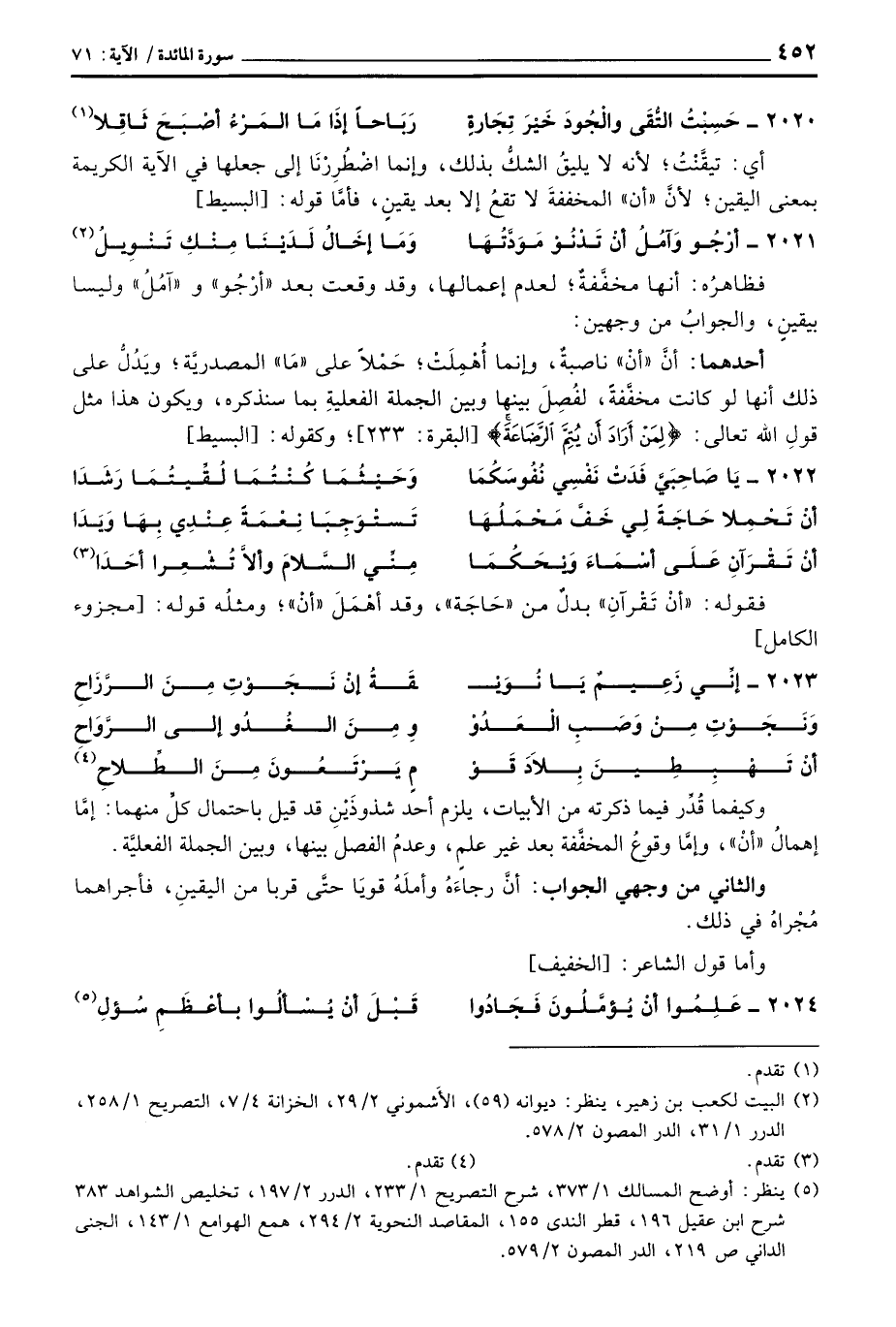 فظاهرُه: أنها مخفَّفةٌ؛ لعدم إعمالها، وقد وقعت بعد «أرْجُو» و «آمُلُ» وليسا بيقينٍ، والجوابُ من وجهين: