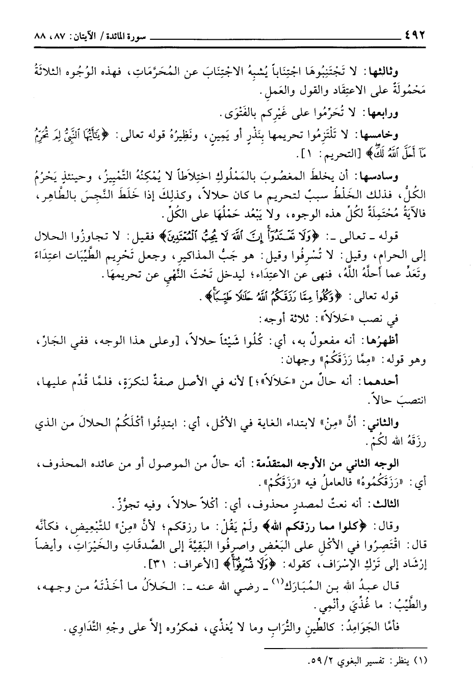 قال عبدُ الله بن المُبَارَك - رَضِيَ اللَّهُ عَنْه -: الحَلاَلُ ما أخَذْتَهُ من وجهه، والطَّيِّبُ: ما غُذِيَ وأنْمِي.