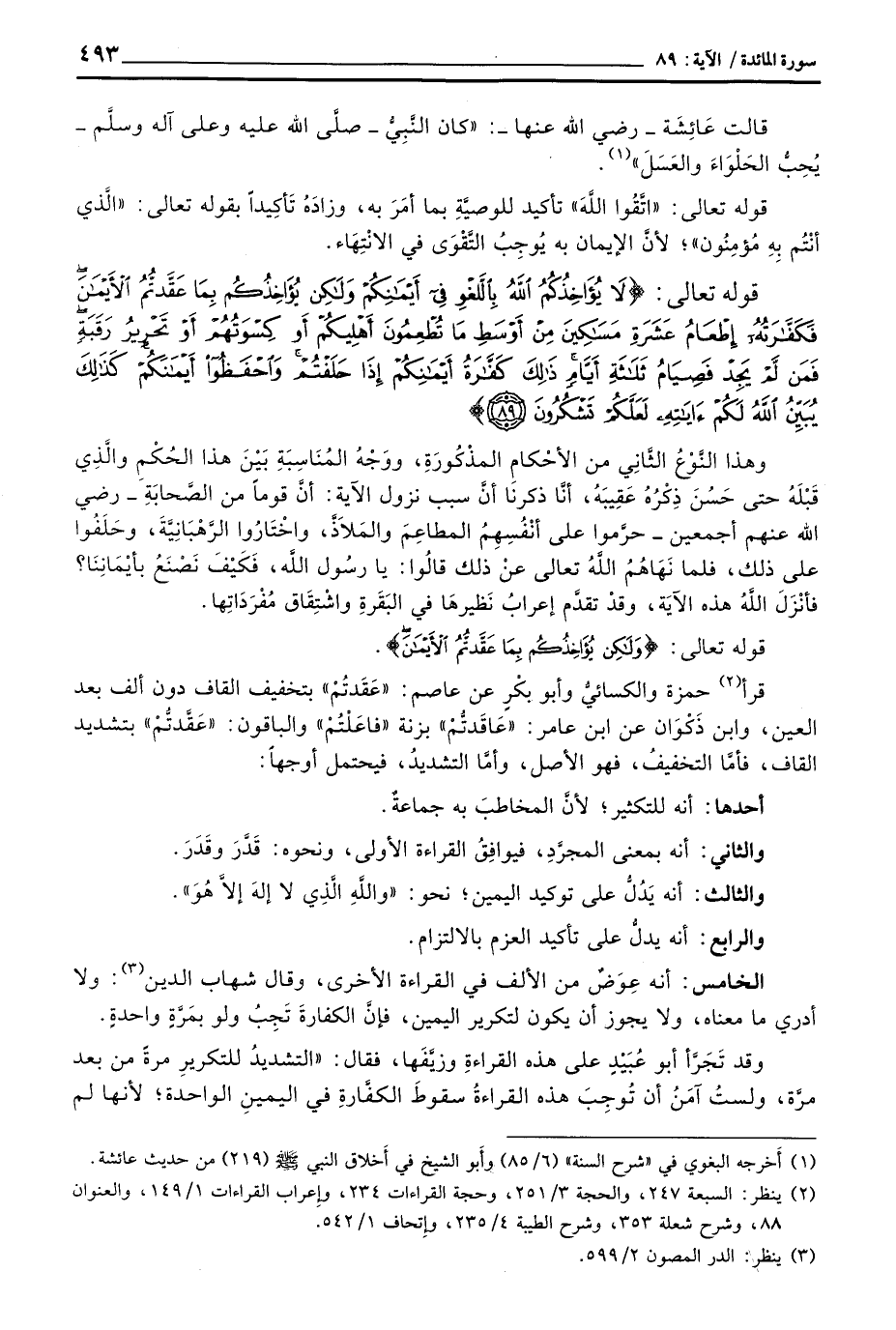 قرأ حمزة والكسائيُّ وأبو بكْرٍ عن عاصم: «عَقَدتُمْ» بتخفيف القاف دون ألف بعد العين، وابن ذَكْوَان عن ابن عامر: «عَاقَدتُّمْ» بزنة «فاعَلْتُمْ» والباقون: «عَقَّدتُّمْ» بتشديد القاف، فأمَّا التخفيفُ، فهو الأصل، وأمَّا التشديدُ، فيحتمل أوجهاً: