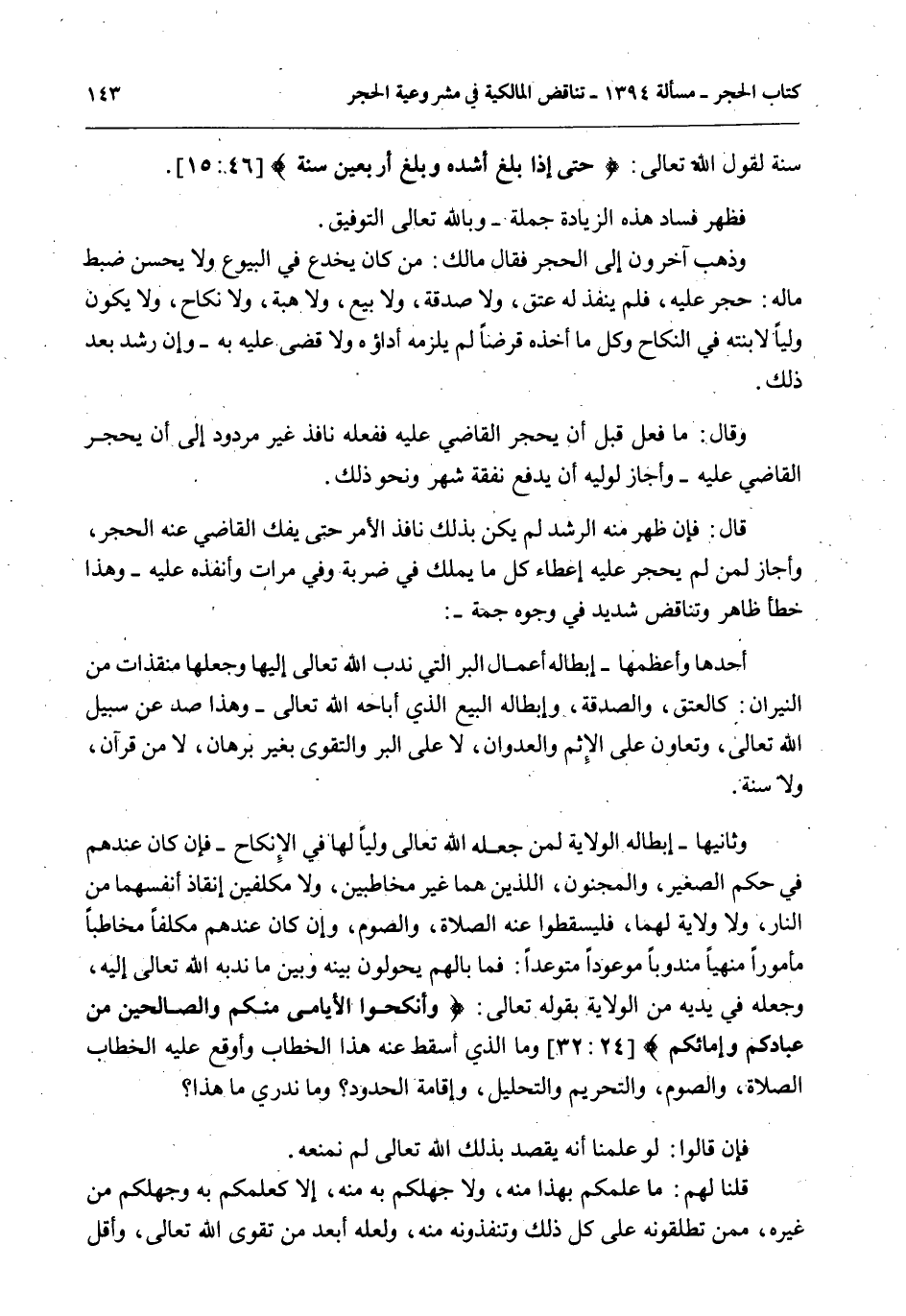سَنَةً لِقَوْلِ اللَّهِ تَعَالَى: {حَتَّى إِذَا بَلَغَ أَشُدَّهُ وَبَلَغَ أَرْبَعِينَ سَنَةً} [الأحقاف: 15] فَظَهَرَ فَسَادُ هَذِهِ الزِّيَادَةِ جُمْلَةً - وَبِاَللَّهِ تَعَالَى التَّوْفِيقُ.