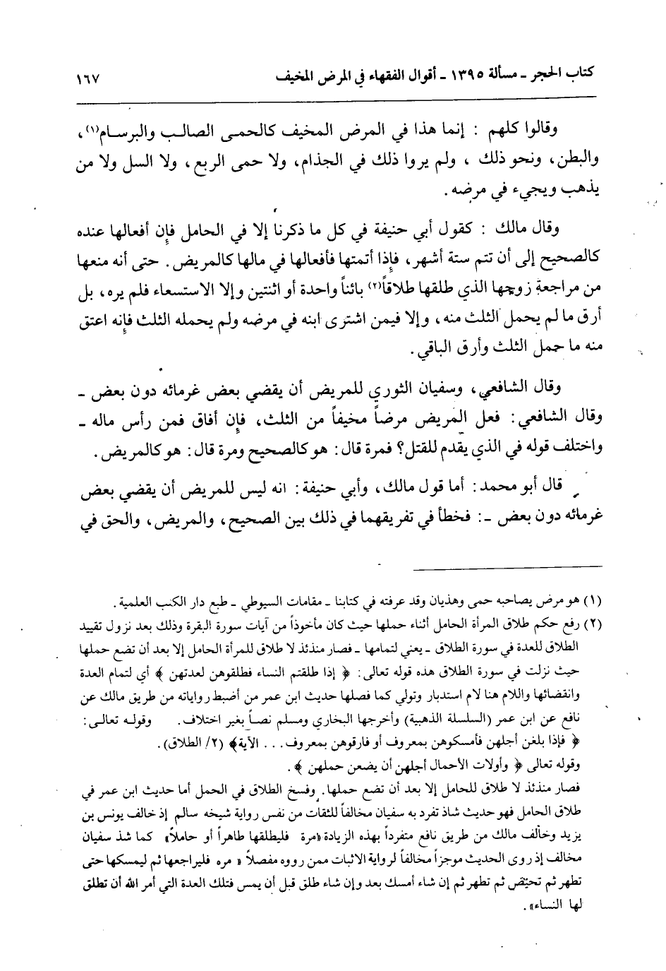 وَقَالَ الشَّافِعِيُّ، وَسُفْيَانُ الثَّوْرِيُّ لِلْمَرِيضِ أَنْ يَقْضِيَ بَعْضَ غُرَمَائِهِ دُونَ بَعْضٍ - وَقَالَ الشَّافِعِيُّ: فِعْلُ الْمَرِيضِ مَرَضًا مُخِيفًا مِنْ الثُّلُثِ، فَإِنْ أَفَاقَ فَمِنْ رَأْسِ مَالِهِ - وَاخْتَلَفَ قَوْلُهُ فِي الَّذِي يُقَدَّمُ لِلْقَتْلِ؟ فَمَرَّةً قَالَ: هُوَ كَالصَّحِيحِ وَمَرَّةً قَالَ: هُوَ كَالْمَرِيضِ.