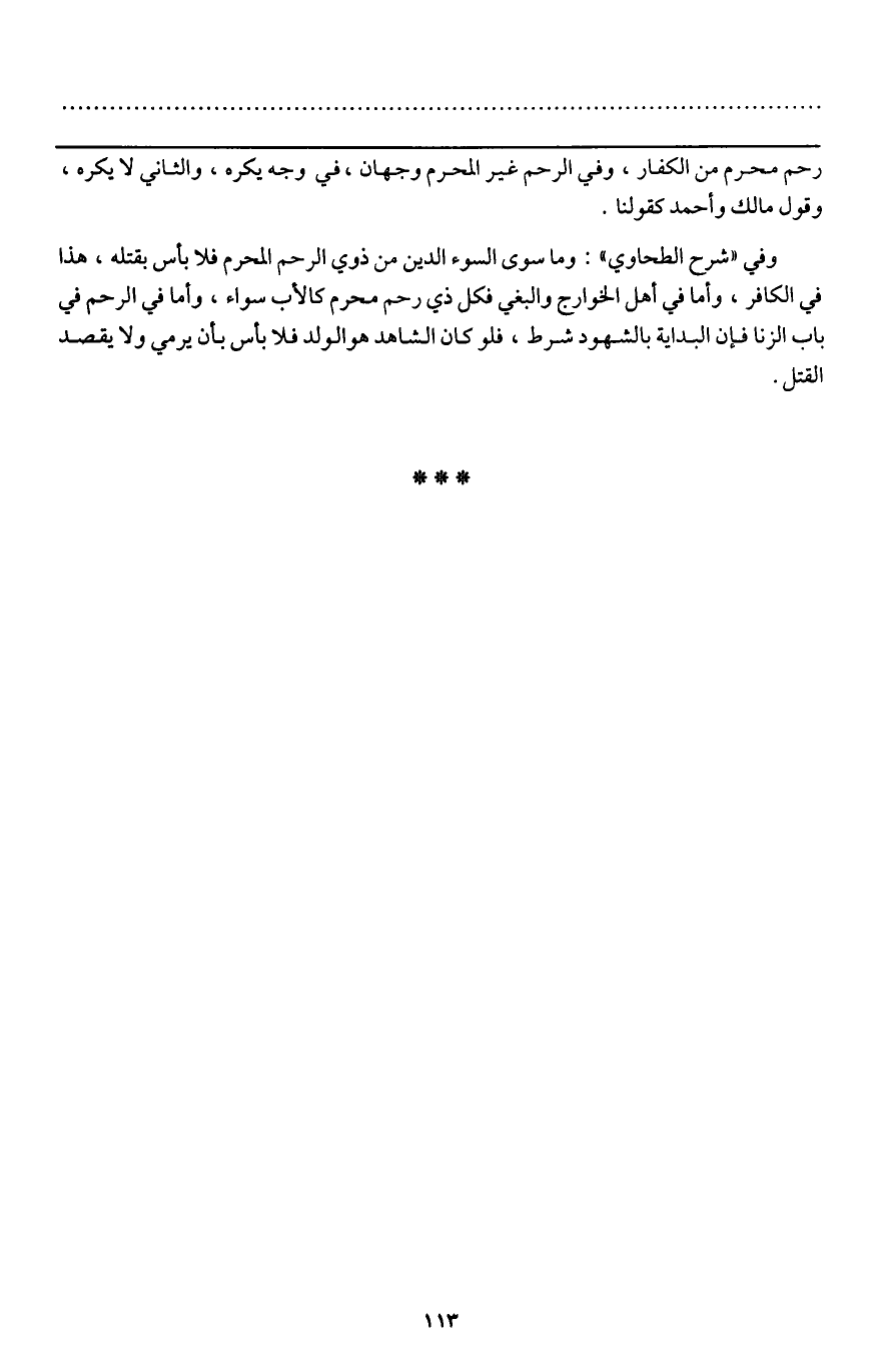 ـــــــــــــــــــــــــــــQرحم محرم من الكفار، وفي الرحم غير المحرم وجهان، في وجه يكره، والثاني لا يكره، وقول مالك وأحمد كقولنا.