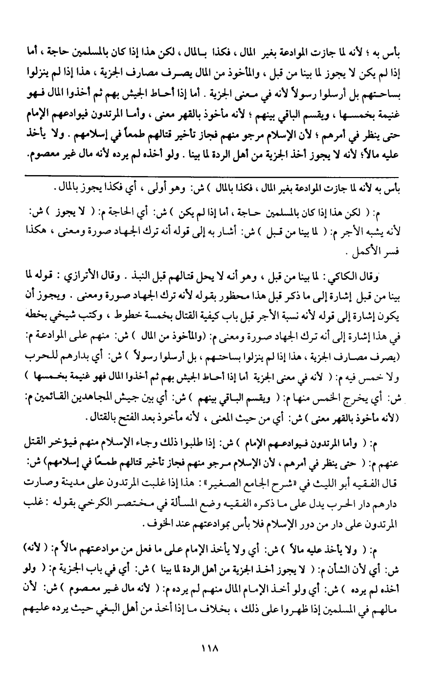 م: (ولا يأخذ عليه مالاً) ش: أي ولا يأخذ الإمام على ما فعل من موادعتهم مالاً (لأنه) ش: أي لأن الشأن م: (لا يجوز أخذ الجزية من أهل الردة لما بينا) ش: أي في باب الجزية م: (ولو أخذه لم يرده) ش: أي ولو أخذ الإمام المال منهم لم يرده م: (لأنه مال غير معصوم) ش: لأن مالهم في المسلمين إذا ظهروا على ذلك، بخلاف ما إذا أخذ من أهل البغي حيث يرده عليهم