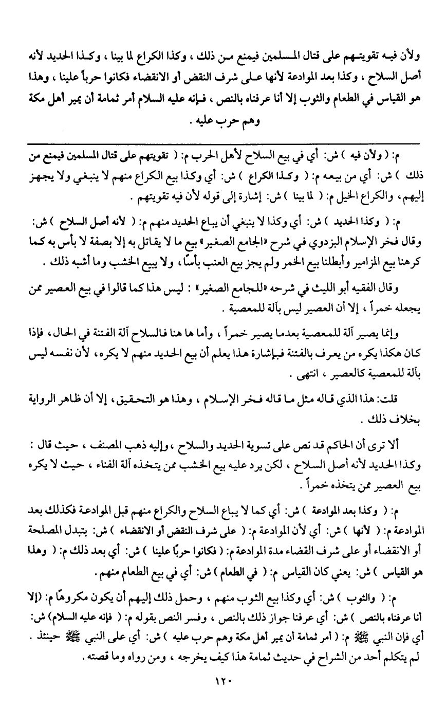 وإنما يصير آلة للمعصية بعدما يصير خمراً، وأما هاهنا فالسلاح آلة الفتنة في الحال، فإذا كان هكذا يكره من يعرف بالفتنة فبإشارة هذا يعلم أن بيع الحديد منهم لا يكره، لأن نفسه ليس بآلة للمعصية كالعصير، انتهى.