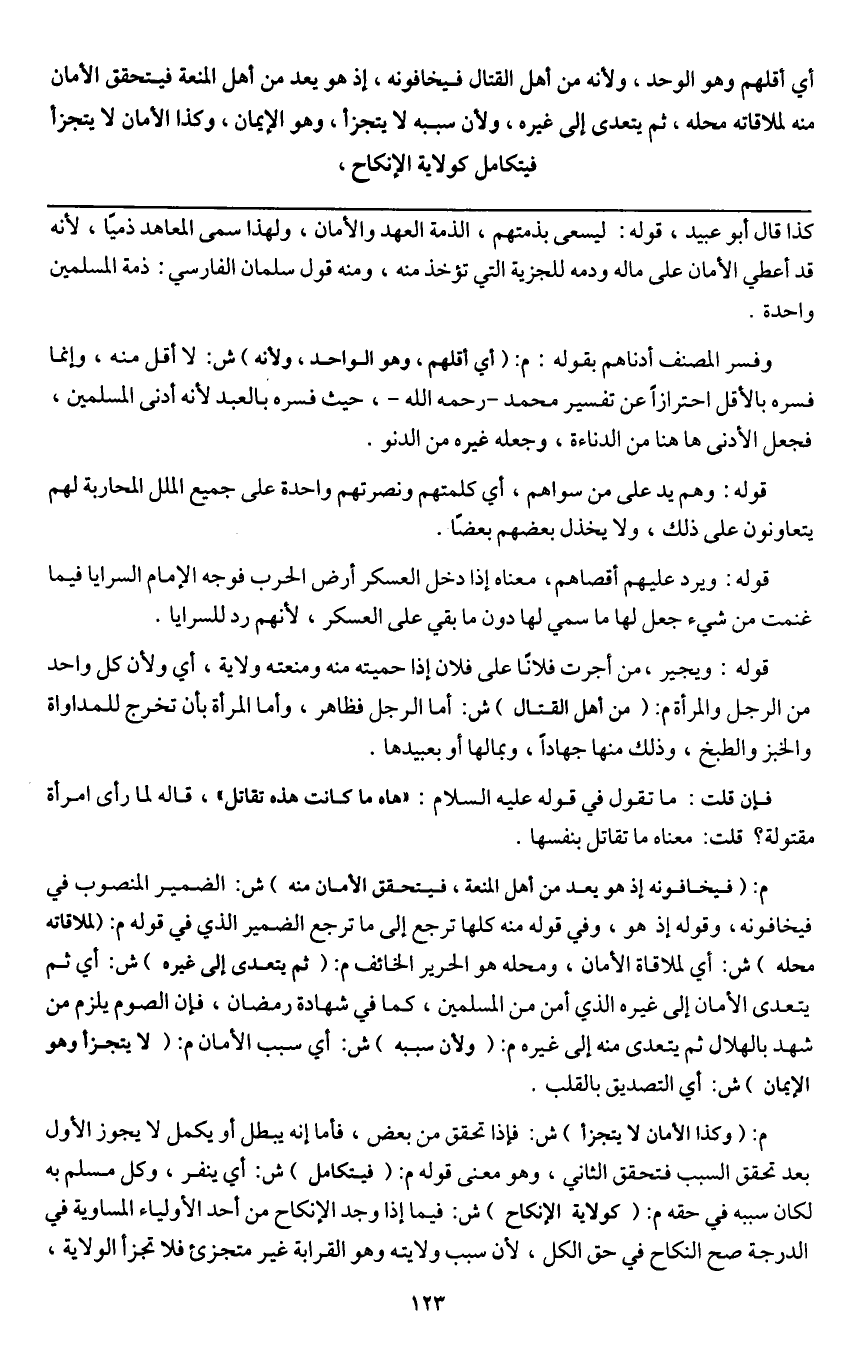ـــــــــــــــــــــــــــــQكذا قال أبو عبيد، قوله: ليسعى بذمتهم، الذمة العهد والأمان، ولهذا سمى المعاهد ذمياً، لأنه قد أعطي الأمان على ماله ودمه للجزية التي تؤخذ منه، ومنه قول سلمان الفارسي: ذمة المسلمين واحدة.
