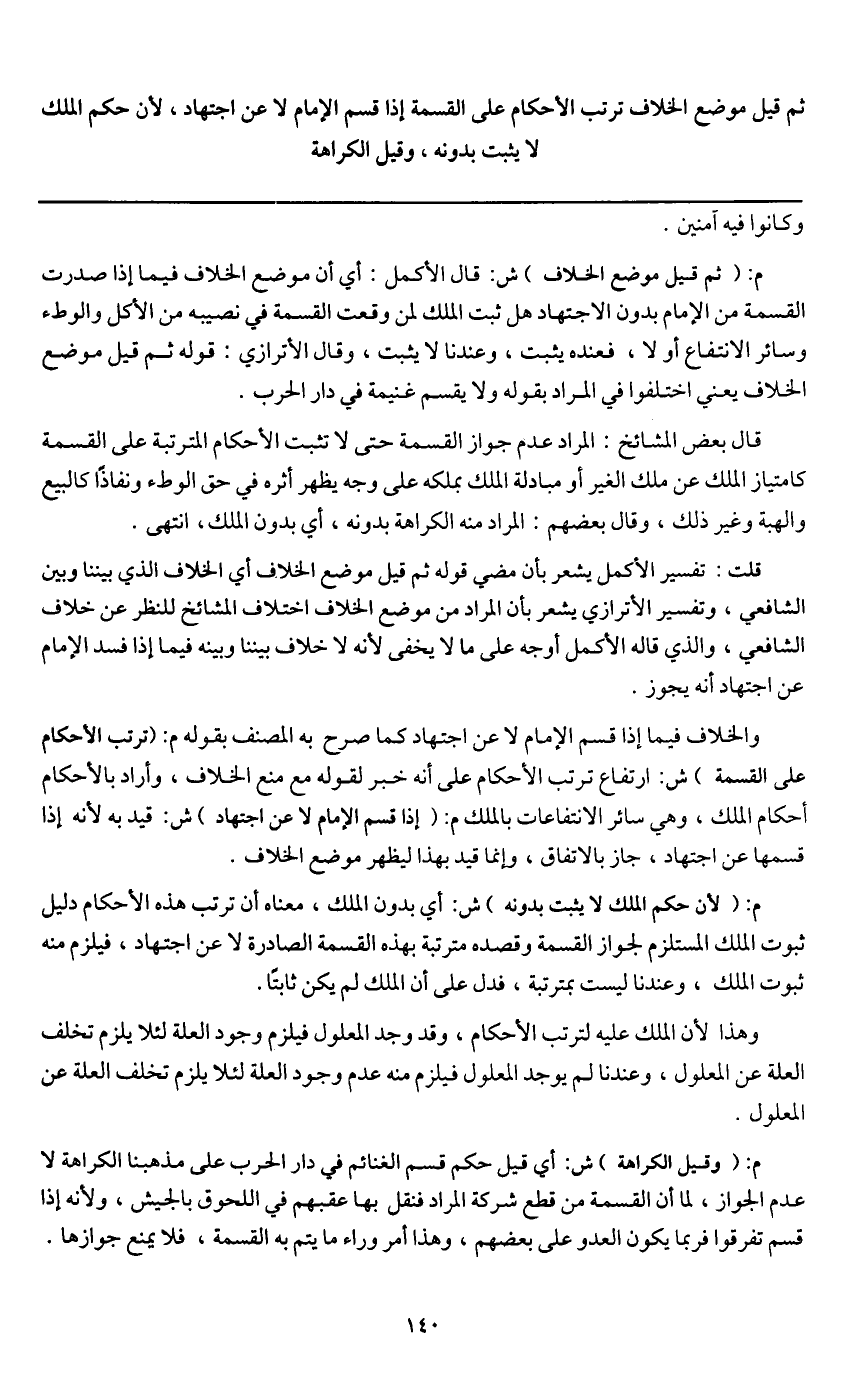 ثم قيل: موضع الخلاف ترتب الأحكام على القسمة إذا قسم الإمام لا عن اجتهاد، لأن حكم الملك لا يثبت بدونه، وقيل: الكراهة