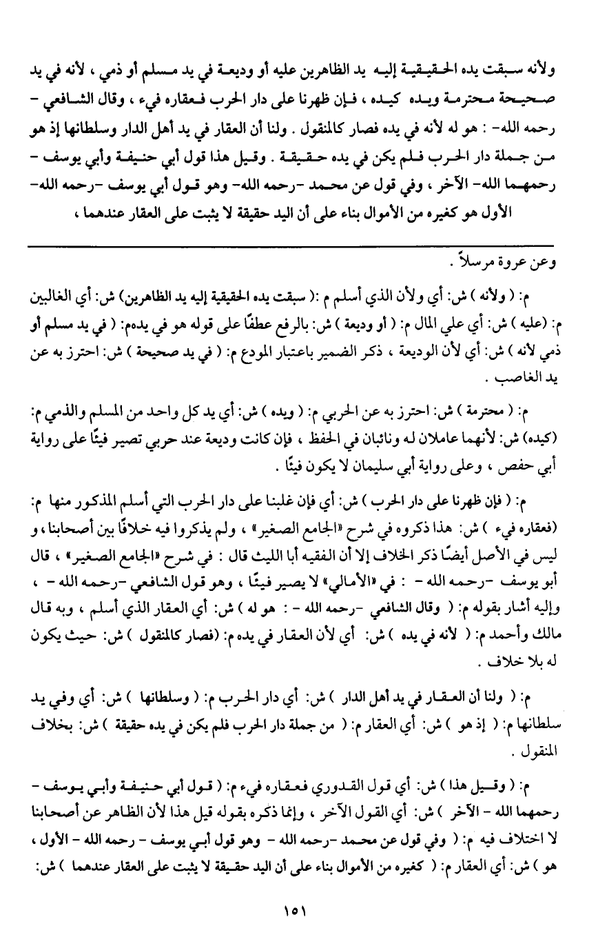 ولنا أن العقار في يد أهل الدار وسلطانها إذ هو من جملة دار الحرب، فلم يكن في يده حقيقة. وقيل: هذا قول أبي حنيفة وأبي يوسف - رحمهما الله - الآخر، وفي قول عن محمد - رَحِمَهُ اللَّهُ - وهو قول أبي يوسف - رَحِمَهُ اللَّهُ - الأول: هو كغيره من الأموال بناء على أن اليد حقيقة لا يثبت على العقار عندهما،