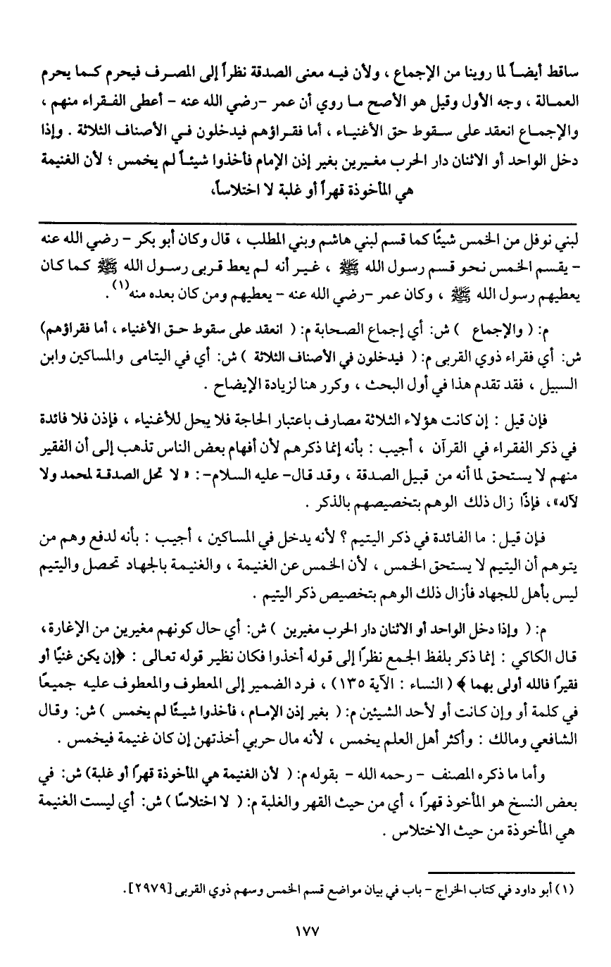 ـــــــــــــــــــــــــــــQلبني نوفل من الخمس شيئاً، كما قسم لبني هاشم وبني المطلب، قال: وكان أبو بكر - رَضِيَ اللَّهُ عَنْهُ - يقسم الخمس نحو قسم رسول الله - صَلَّى اللَّهُ عَلَيْهِ وَسَلَّمَ -، غير أنه لم يعط قربى رسول الله - صَلَّى اللَّهُ عَلَيْهِ وَسَلَّمَ - كما كان يعطيهم رسول الله - صَلَّى اللَّهُ عَلَيْهِ وَسَلَّمَ -، وكان عمر - رَضِيَ اللَّهُ عَنْهُ - يعطيهم ومن كان بعده منه» .