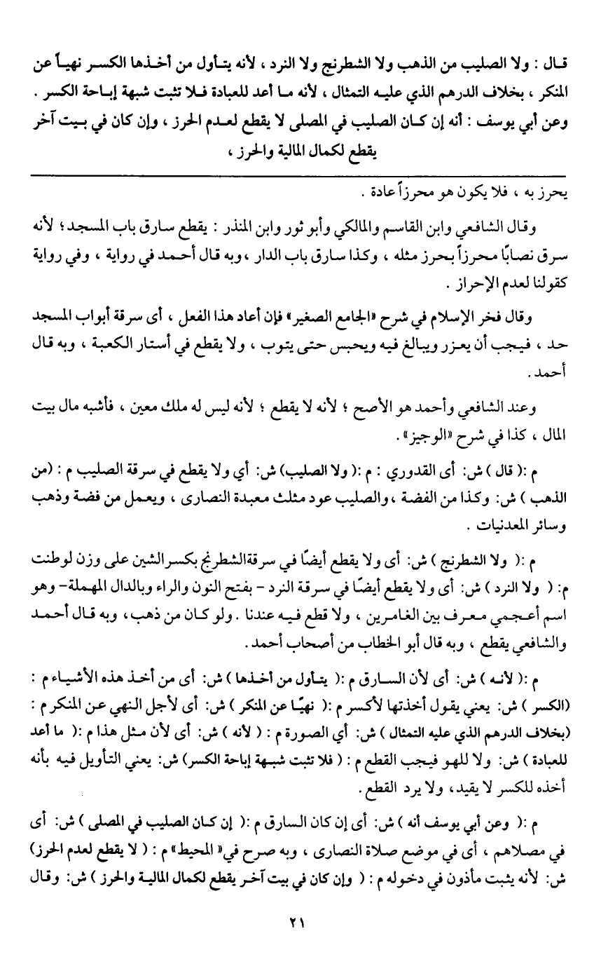 م: (قال) ش: أي القدوري: م: (ولا الصليب) ش: أي ولا يقطع في سرقة الصليب م: (من الذهب) ش: وكذا من الفضة، والصليب عود مثلث معبدة النصارى، ويعمل من فضة وذهب وسائر المعدنيات.