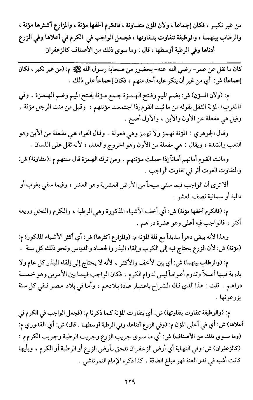 ألا ترى أن الواجب فيما سقي سيحاً من الأرض العشرية وهو العشر، وفيما سقي بغرب أو دالية أو سمانية نصف العشر.