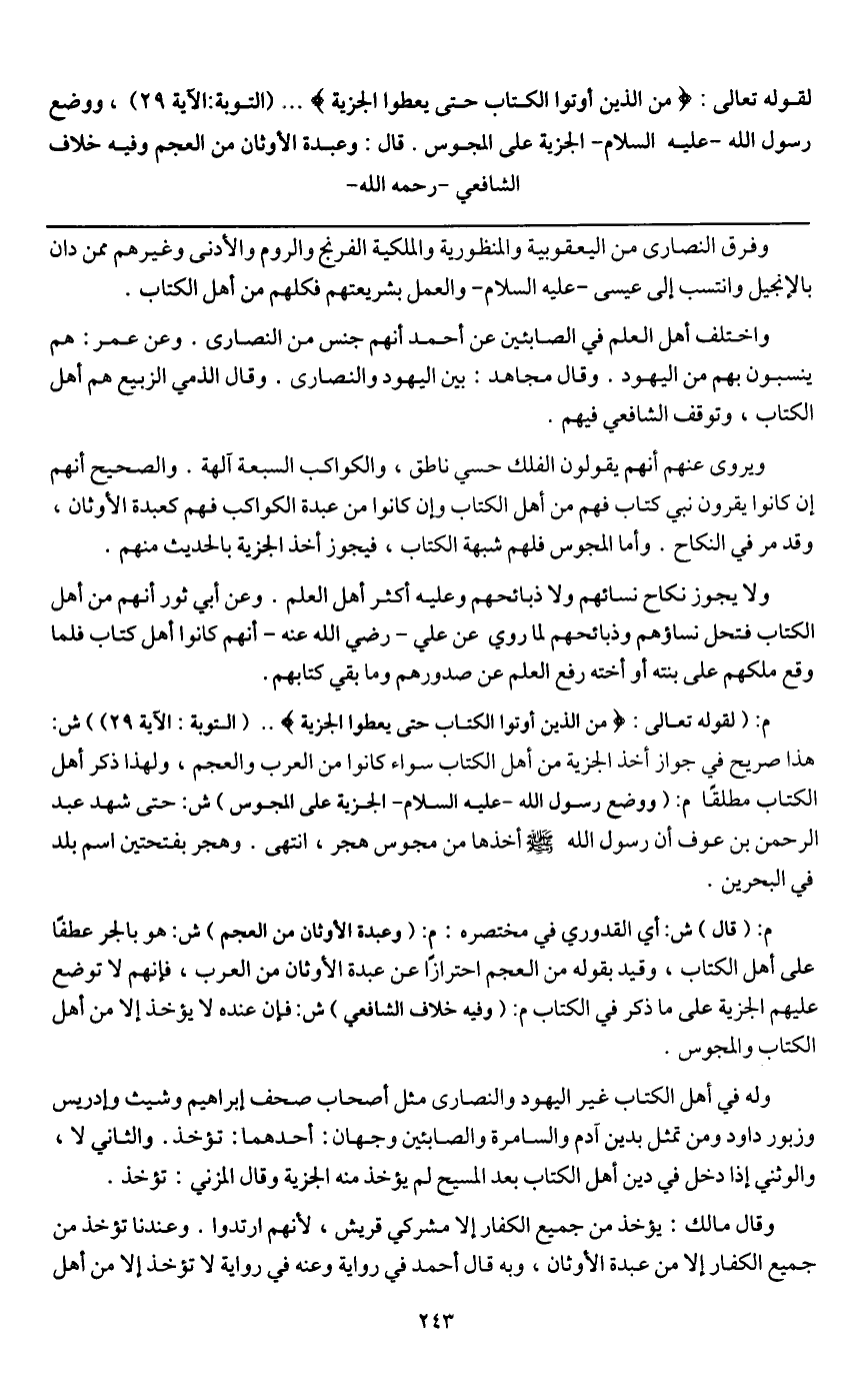 ـــــــــــــــــــــــــــــQوفرق النصارى من اليعقوبية والنسطورية والملكية الفرنج والروم والأدنى، وغيرهم ممن دان بالإنجيل وانتسب إلى عيسى - عَلَيْهِ السَّلَامُ - والعمل بشريعتهم، فكلهم من أهل الكتاب.