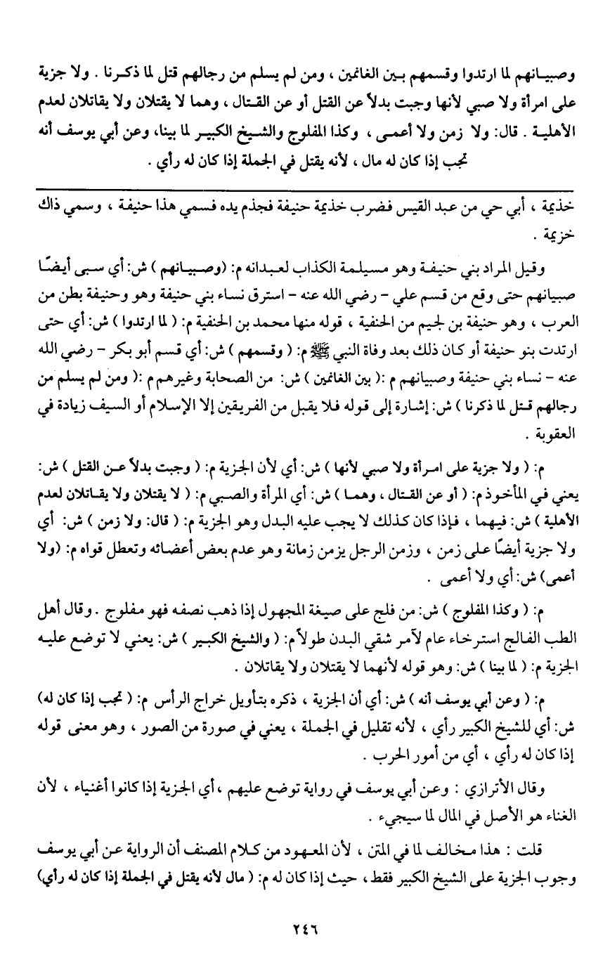 قلت: هذا مخالف لما في المتن، لأن المعهود من كلام المصنف أن الرواية عن أبي يوسف وجوب الجزية على الشيخ الكبير فقط، حيث إذا كان له م: (مال لأنه يقتل في الجملة إذا كان له رأي)