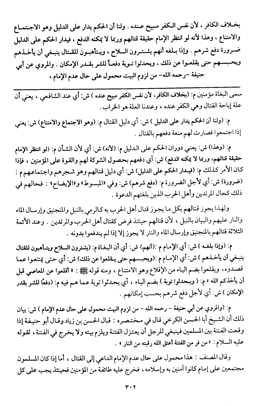 م: (وهذا) ش: يعني دوران الحكم على الدليل م: (لأنه) ش: أي لأن الشأن م: (لو انتظر الإمام حقيقة قتالهم، وربما لا يمكنه الدفع) ش: أي دفعهم بحصول الشوكة لهم والقوة على المؤمنين، فإذا كان الأمر كذلك م: (فيدار الحكم على الدليل) ش: أي دليل قتالهم وهو شجرهم واجتماعهم م: (ضرورة) ش: أي لأجل الضرورة م: (دفع شرهم) ش: وفي " المبسوط " و " الإيضاح ": فحالهم في ذلك كحال المرتدين وأهل الحرب الذين بلغتهم الدعوة.