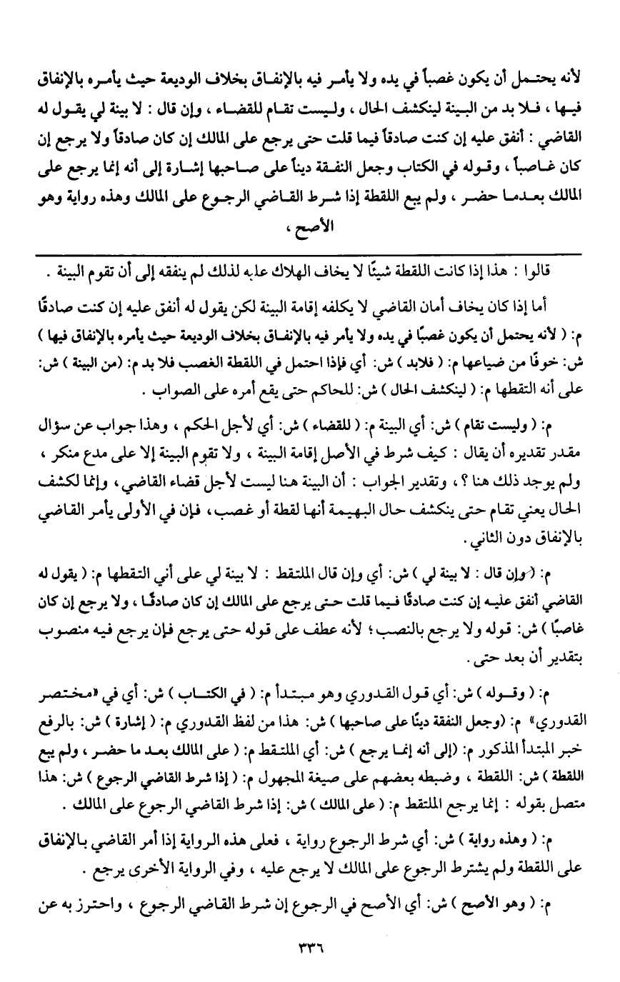 ـــــــــــــــــــــــــــــQقالوا: هذا إذا كانت اللقطة شيئاً لا يخاف الهلاك عليه لذلك لم ينفقه إلى أن تقوم البينة.