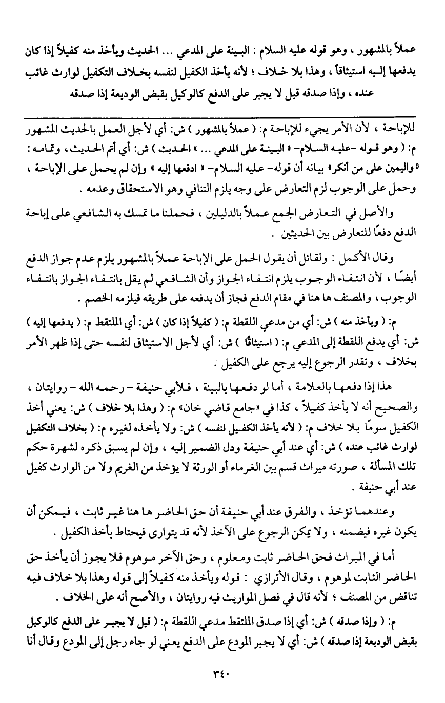 ـــــــــــــــــــــــــــــQللإباحة؛ لأن الأمر يجيء للإباحة م: (عملاً بالمشهور) ش: أي لأجل العمل بالحديث المشهور م: (وهو قوله - عَلَيْهِ السَّلَامُ - «البينة على المدعي ... » الحديث) ش: أي أتم الحديث، وتمامه: «واليمين على من أنكر» بيانه أن قوله - عَلَيْهِ السَّلَامُ - " ادفعها إليه " ون لم يحمل على الإباحة، وحمل على الوجوب لزم التعارض على وجه يلزم التنافي وهو الاستحقاق وعدمه.