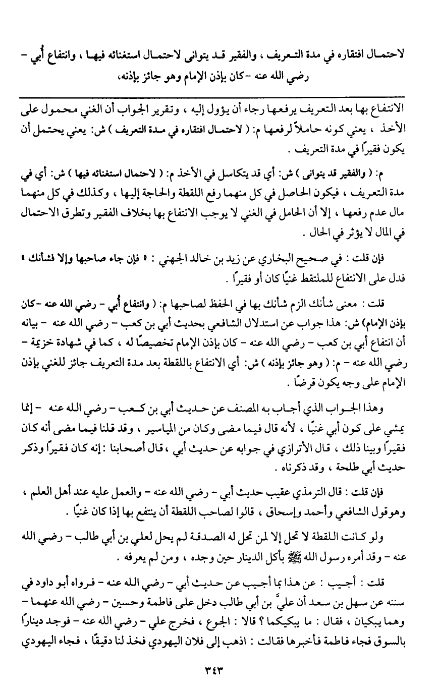 فإن قلت: في صحيح البخاري عن زيد بن خالد الجهني: «فإن جاء صاحبها وإلا فشأنك» فدل على الانتفاع للملتقط غنياً كان أو فقيراً.