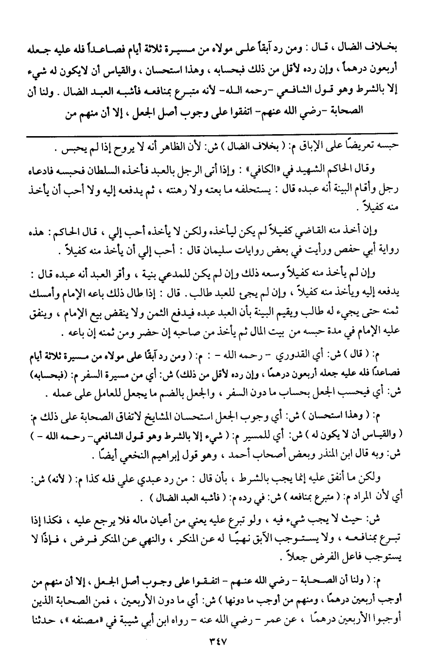 ش: حيث لا يجب شيء فيه، ولو تبرع عليه يعني من أعيان ماله فلا يرجع عليه، فكذا إذا تبرع بمنافعه، ولا يستوجب الآبق نهياً له عن المنكر، والنهي عن المنكر فرض، فإذاً لا يستوجب فاعل الفرض جعلاً.
