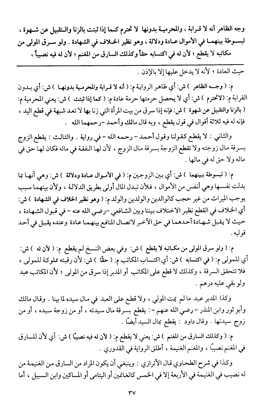 م: (وجه الظاهر) ش: أي ظاهر الرواية م: (أنه لا قرابة والمحرمية بدونها) ش: أي بدون القرابة م: (لا تحترم) ش: أي لا يحصل حرمتها حرمة عادة م: (كما إذا ثبتت) ش: يعني المحرمية م: (بالزنا والتقبيل عن شهوة) ش: فإنه إذا سرق من بيت المال التي زنا بها لا تعد شبهة في قطع اليد، فإنه له فيه ثلاثة أقوال في قول يقطع، وبه قال مالك وأحمد - رحمهما الله.