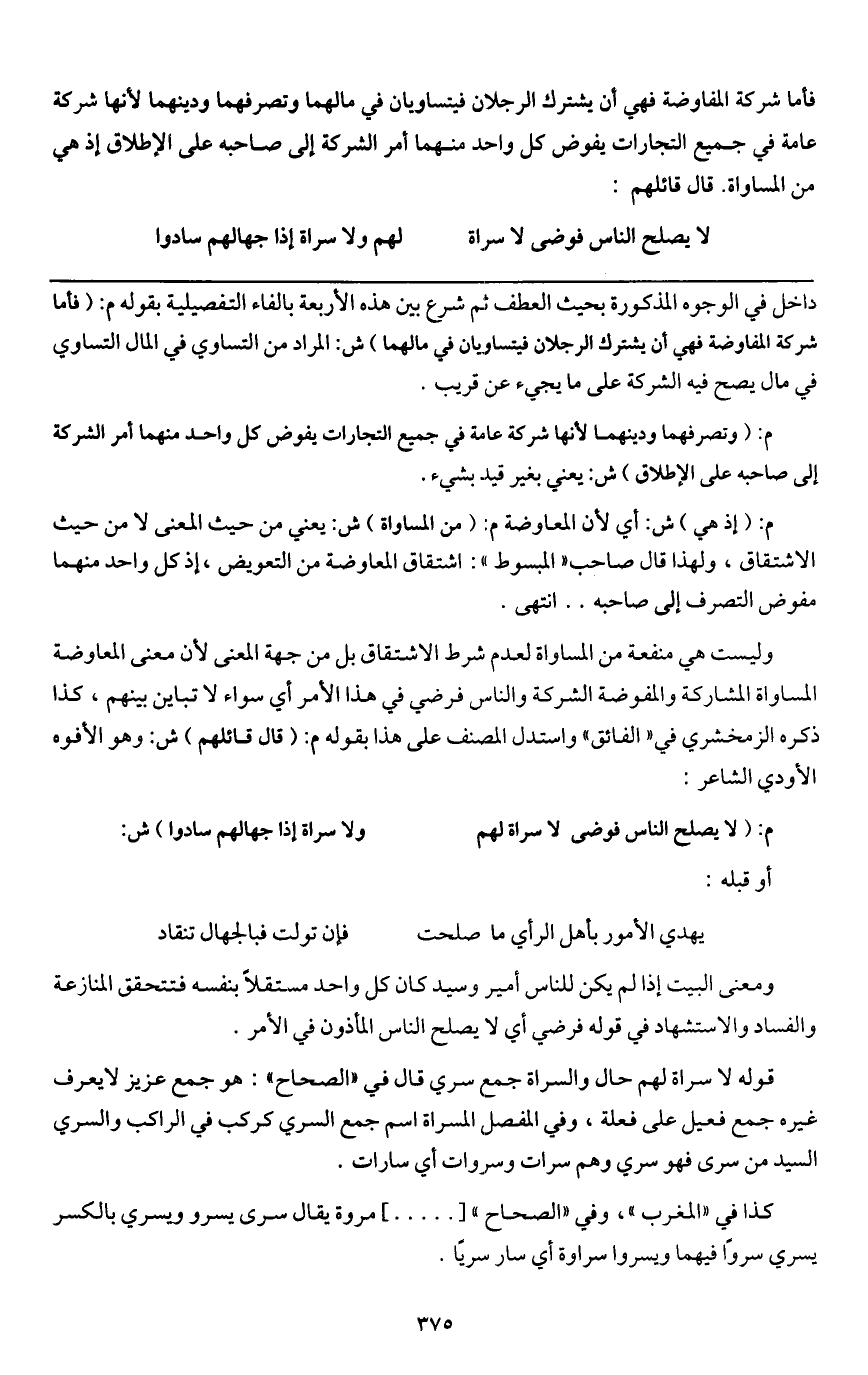 ومعنى البيت إذا لم يكن للناس أمير وسيد كان كل واحدا مستقلاً بنفسه فتتحقق المنازعة والفساد، والاستشهاد في قوله فوضى أي لا يصلح الناس المأذون في الأمر.