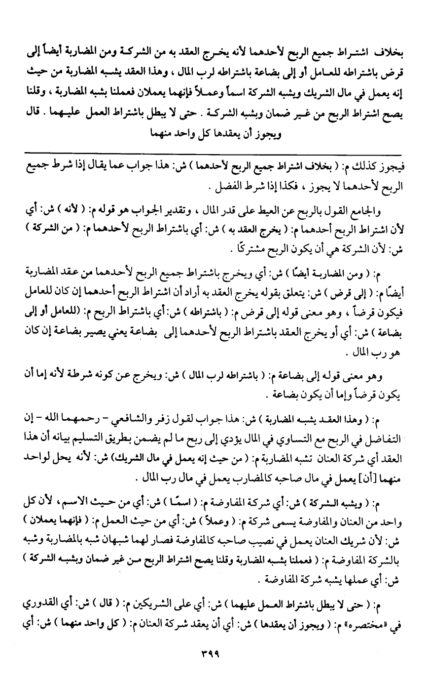 بخلاف اشتراط جميع الربح لأحدهما؛ لأنه يخرج العقد به من الشركة ومن المضاربة أيضا إلى قرض باشتراطه للعامل أو إلى بضاعة باشتراطه لرب المال،