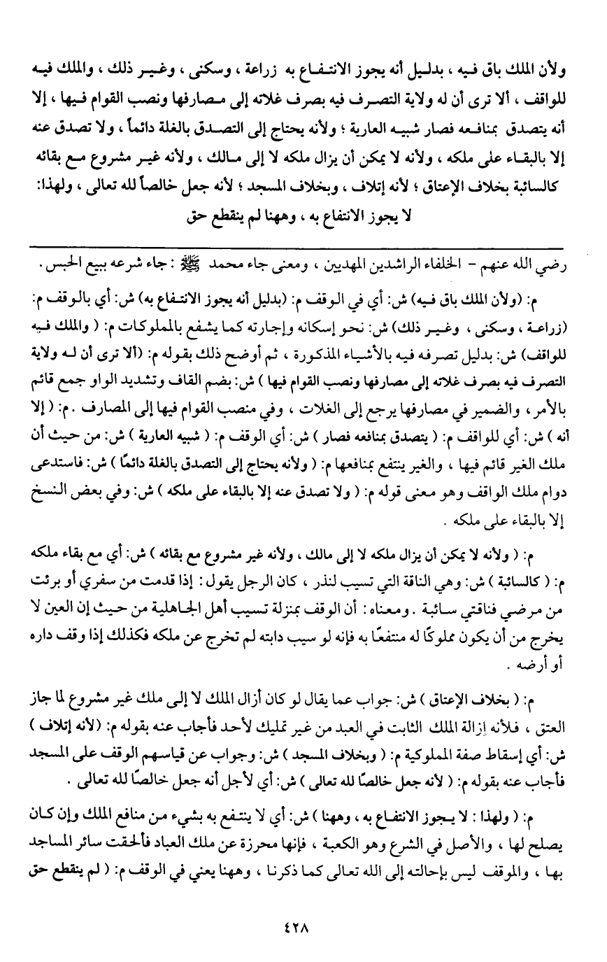 ـــــــــــــــــــــــــــــQ- رَضِيَ اللَّهُ عَنْهُمْ - الخلفاء الراشدين المهديين، ومعنى جاء محمد - صَلَّى اللَّهُ عَلَيْهِ وَسَلَّمَ -: جاء شرعه ببيع الحبس.