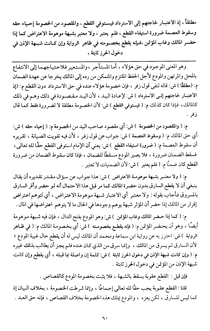 ولا معتبر بشبهة موهومة الاعتراض كما إذا حضر المالك وغاب المؤتمن، فإنه يقطع بخصومته في ظاهر الرواية وإن كانت شبهة الإذن في دخول الحرز ثابتة،