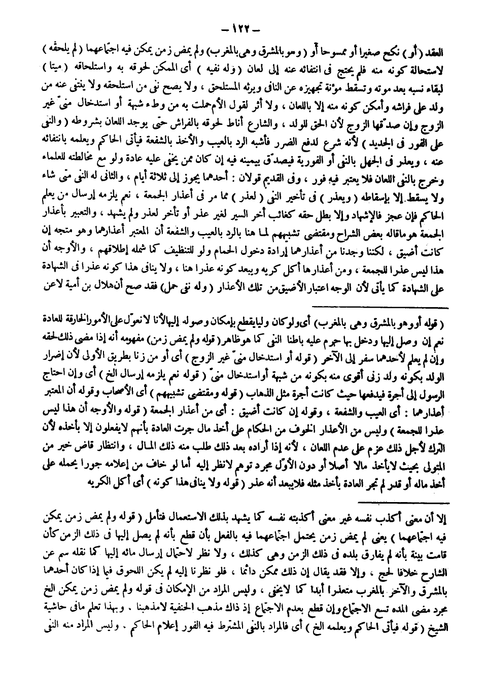 ـــــــــــــــــــــــــــــQإلَّا أَنَّ مَعْنَى أَكْذَبَ نَفْسَهُ غَيْرُ مَعْنَى أَكْذَبْته نَفْسَهُ كَمَا يَشْهَدُ بِذَلِكَ الِاسْتِعْمَالُ فَتَأَمَّلْ (قَوْلُهُ: وَلَمْ يَمْضِ زَمَنٌ يُمْكِنُ فِيهِ اجْتِمَاعُهُمَا) يَعْنِي: لَمْ يَمْضِ زَمَنٌ يَحْتَمِلُ اجْتِمَاعَهُمَا فِيهِ بِالْفِعْلِ بِأَنْ قُطِعَ بِأَنَّهُ لَمْ يَصِلْ إلَيْهَا فِي ذَلِكَ الزَّمَنِ كَأَنْ قَامَتْ بَيِّنَةٌ بِأَنَّهُ لَمْ يُفَارِقْ بَلَدَهُ فِي ذَلِكَ الزَّمَنِ وَهِيَ كَذَلِكَ، وَلَا نَظَرَ لِاحْتِمَالِ إرْسَالِ مَائِهِ إلَيْهَا كَمَا نَقَلَهُ سم عَنْ الشَّارِحِ خِلَافًا لحج، وَإِلَّا فَقَدْ يُقَالُ إنَّ ذَلِكَ مُمْكِنٌ دَائِمًا، فَلَوْ نَظَرْنَا إلَيْهِ لَمْ يَكُنْ اللُّحُوقُ فِيمَا إذَا كَانَ أَحَدُهُمَا بِالْمَشْرِقِ وَالْآخَرُ بِالْمَغْرِبِ مُتَعَذِّرًا أَبَدًا كَمَا لَا يَخْفَى، وَلَيْسَ الْمُرَادُ مِنْ الْإِمْكَانِ فِي قَوْلِهِ وَلَمْ يَمْضِ زَمَنٌ يُمْكِنُ إلَخْ. مُجَرَّدُ مُضِيِّ الْمُدَّةِ تَسَعُ الِاجْتِمَاعَ، وَإِنْ قُطِعَ بِعَدَمِ الِاجْتِمَاعِ إذْ ذَاكَ مَذْهَبُ الْحَنَفِيَّةِ لَا مَذْهَبُنَا، وَبِهَذَا تَعْلَمُ مَا فِي حَاشِيَةِ الشَّيْخِ (قَوْلُهُ: فَيَأْتِي الْحَاكِمُ وَيُعَلِّمُهُ إلَخْ.) أَيْ فَالْمُرَادُ بِالنَّفْيِ الْمُشْتَرَطِ فِيهِ الْفَوْرُ إعْلَامُ الْحَاكِمِ، وَلَيْسَ الْمُرَادُ مِنْهُ النَّفْيَ