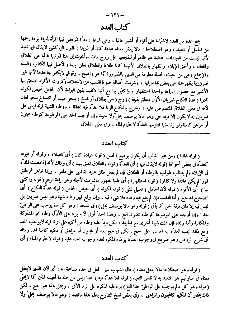 ـــــــــــــــــــــــــــــQكِتَابُ الْعِدَدِ (قَوْلُهُ: وَهُوَ اصْطِلَاحًا مَا لَا يُعْقَلُ مَعْنَاهُ) قَالَ الشِّهَابُ سم: لَعَلَّ فِي حَدِّهِ مُسَامَحَةٌ. اهـ. أَيْ لِأَنَّ الَّذِي لَا يُعْقَلُ مَعْنَاهُ فِي عِبَارَتِهِمْ هُوَ الْمُتَعَبَّدُ بِهِ لَا نَفْسُ التَّعَبُّدِ (قَوْلُهُ: فَلَا عِدَّةَ فِيهِ) هَذَا لَيْسَ مِنْ جُمْلَةِ مَا أَفْهَمَهُ الْمَتْنُ كَمَا لَا يَخْفَى (قَوْلُهُ: وَهُوَ كُلُّ مَا لَمْ يُوجِبْ عَلَى الْوَاطِئِ حَدًّا إلَخْ.) يَرِدُ عَلَيْهِ الْمُكْرَهُ عَلَى الزِّنَا الْآتِي، وَبِمِثْلِ هَذَا عَبَّرَ حَجّ، لَكِنَّ ذَاكَ يَخْتَارُ أَنَّ الْمُكْرَهَ كَالْمَجْنُونِ وَالْمُرَاهِقِ، وَفِي بَعْضِ نُسَخِ الشَّارِحِ بَدَلَ هَذَا مَا نَصُّهُ: وَهُوَ مَا لَا يُوصَفُ بِحِلٍّ وَلَا
