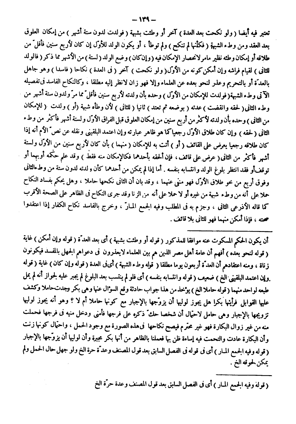 (قَوْلُهُ: أَوْ وُطِئَتْ بِشُبْهَةٍ) أَيْ بَعْدَ الْعِدَّةِ (قَوْلُهُ: وَإِنْ أَمْكَنَ) غَايَةٌ (قَوْلُهُ: لِنَحْوِ بُعْدِهِ) أَفْهَمَ أَنَّ عَامَّةَ أَهْلِ مِصْرَ الَّذِينَ هُمْ بَيْنَ الْعُلَمَاءِ لَا يُعْذَرُونَ فِي دَعْوَاهُمْ الْجَهْلَ بِالْمُفْسِدِ فَيَكُونُونَ زُنَاةً، وَمِنْهُ اعْتِقَادُهُمْ أَنَّ الْعِدَّةَ أَرْبَعُونَ يَوْمًا مُطْلَقًا (قَوْلُهُ: وَطْءُ الشُّبْهَةِ) أَيْ فِي الْعِدَّةِ (قَوْلُهُ: وَإِنْ كَانَ) غَايَةً