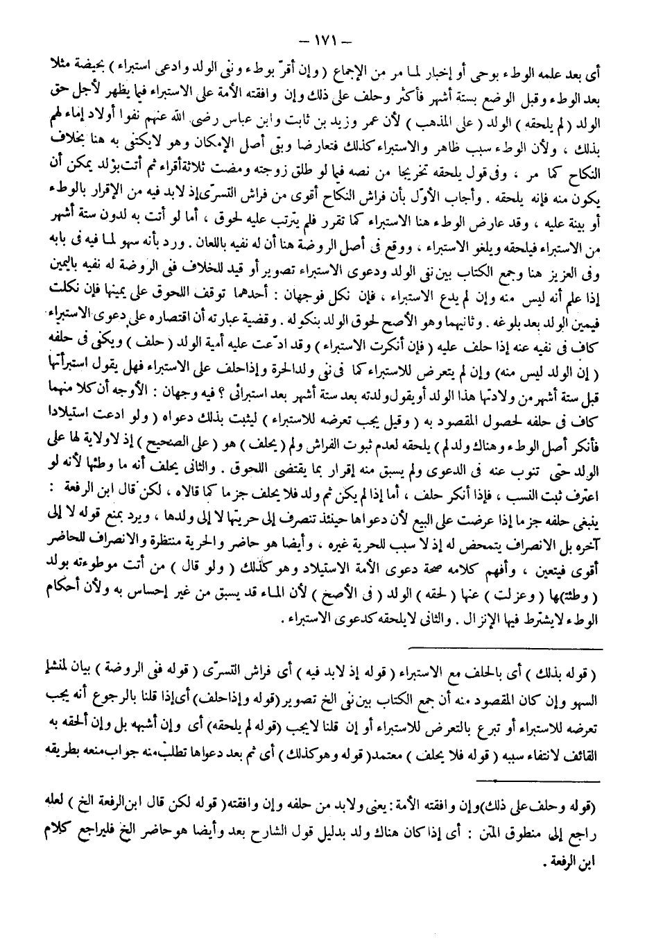 وَرُدَّ بِأَنَّهُ سَهْوٌ لِمَا فِيهِ فِي بَابِهِ وَفِي الْعَزِيزِ هُنَا، وَجَمْعُ الْكِتَابِ بَيْنَ نَفْيِ الْوَلَدِ وَدَعْوَى الِاسْتِبْرَاءِ تَصْوِيرٌ أَوْ قَيْدٌ لِلْخِلَافِ فَفِي الرَّوْضَةِ، لَهُ نَفْيُهُ بِالْيَمِينِ إذَا عَلِمَ أَنَّهُ لَيْسَ مِنْهُ وَإِنْ لَمْ يَدَّعِ الِاسْتِبْرَاءَ، فَإِنْ نَكَلَ فَوَجْهَانِ: أَحَدُهُمَا تَوَقُّفُ اللُّحُوقِ عَلَى يَمِينِهَا فَإِنْ نَكَلَتْ فَيَمِينُ الْوَلَدِ بَعْدَ بُلُوغِهِ.