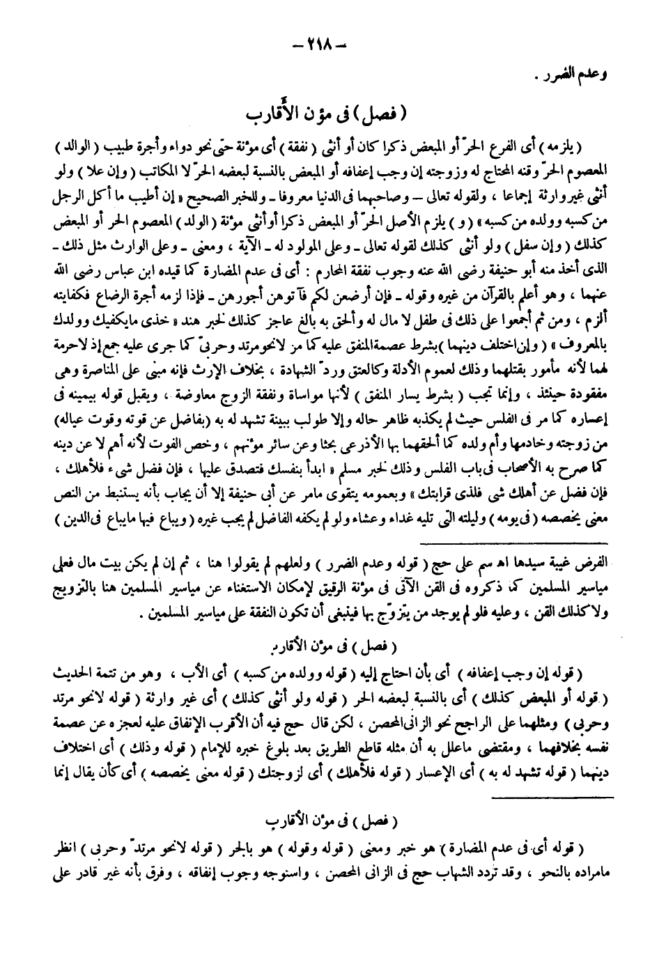 ـــــــــــــــــــــــــــــQ [فَصْلٌ فِي مُؤَنِ الْأَقَارِبِ]