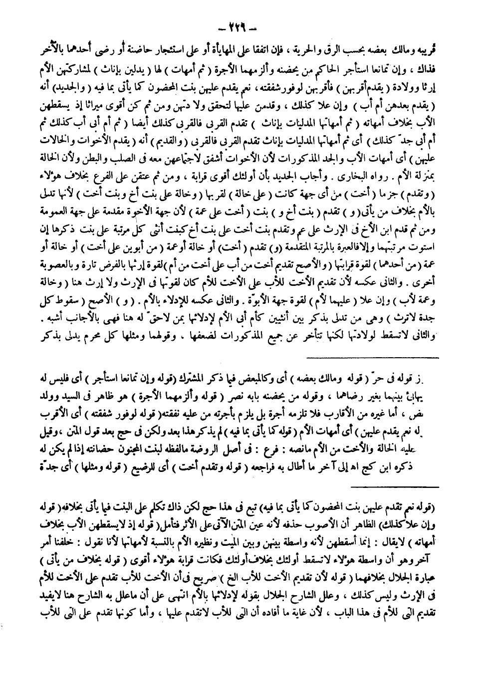 ـــــــــــــــــــــــــــــQقَوْلُهُ: نَعَمْ تُقَدَّمُ عَلَيْهِنَّ بِنْتُ الْمَحْضُونِ كَمَا يَأْتِي بِمَا فِيهِ) تَبِعَ فِي هَذَا حَجّ لَكِنَّ ذَاكَ تَكَلَّمَ عَلَى الْبِنْتِ فِيمَا يَأْتِي بِخِلَافِهِ (قَوْلُهُ: وَإِنْ عَلَا كَذَلِكَ) الظَّاهِرُ أَنَّ الْأَصْوَبَ حَذْفُهُ لِأَنَّهُ عَيْنُ الْمَتْنِ الْآتِي عَلَى الْأَثَرِ فَتَأَمَّلْ (قَوْلُهُ: إذْ لَا يُسْقِطُهُنَّ الْأَبُ بِخِلَافِ أُمَّهَاتِهِ) لَا يُقَالُ: إنَّمَا أَسْقَطَهُنَّ لِأَنَّهُ وَاسِطَةٌ بَيْنَهُنَّ وَبَيْنَ الْمَيِّتِ وَنَظِيرُهُ الْأُمُّ بِالنِّسْبَةِ لِأُمَّهَاتِهَا لِأَنَّا نَقُولُ: خَلَفَنَا أَمْرٌ آخَرُ وَهُوَ أَنَّ وَاسِطَةَ هَؤُلَاءِ لَا تُسْقِطُ أُولَئِكَ بِخِلَافِ أُولَئِكَ فَكَانَتْ قَرَابَةُ هَؤُلَاءِ أَقْوَى (قَوْلُهُ: بِخِلَافِ مَنْ يَأْتِي) عِبَارَةُ الْجَلَالِ بِخِلَافِهِمَا (قَوْلُهُ: لِأَنَّ تَقْدِيمَ الْأُخْتِ لِلْأَبِ إلَخْ.) صَرِيحٌ فِي أَنَّ الْأُخْتَ لِلْأَبِ تُقَدَّمُ عَلَى الْأُخْتِ لِلْأُمِّ فِي الْإِرْثِ وَلَيْسَ كَذَلِكَ، وَعَلَّلَ الشَّارِحُ الْجَلَالُ بِقَوْلِهِ لِإِدْلَائِهَا بِالْأُمِّ انْتَهَى عَلَى أَنَّ مَا عَلَّلَ بِهِ الشَّارِحُ هُنَا لَا يُفِيدُ قَدِيمَ الَّتِي لِلْأُمِّ فِي هَذَا الْبَابِ، لِأَنَّ غَايَةَ مَا أَفَادَهُ أَنَّ الَّتِي لِلْأَبِ لَا تُقَدَّمُ عَلَيْهَا، وَأَمَّا كَوْنُهَا تُقَدَّمُ عَلَى الَّتِي لِلْأَبِ